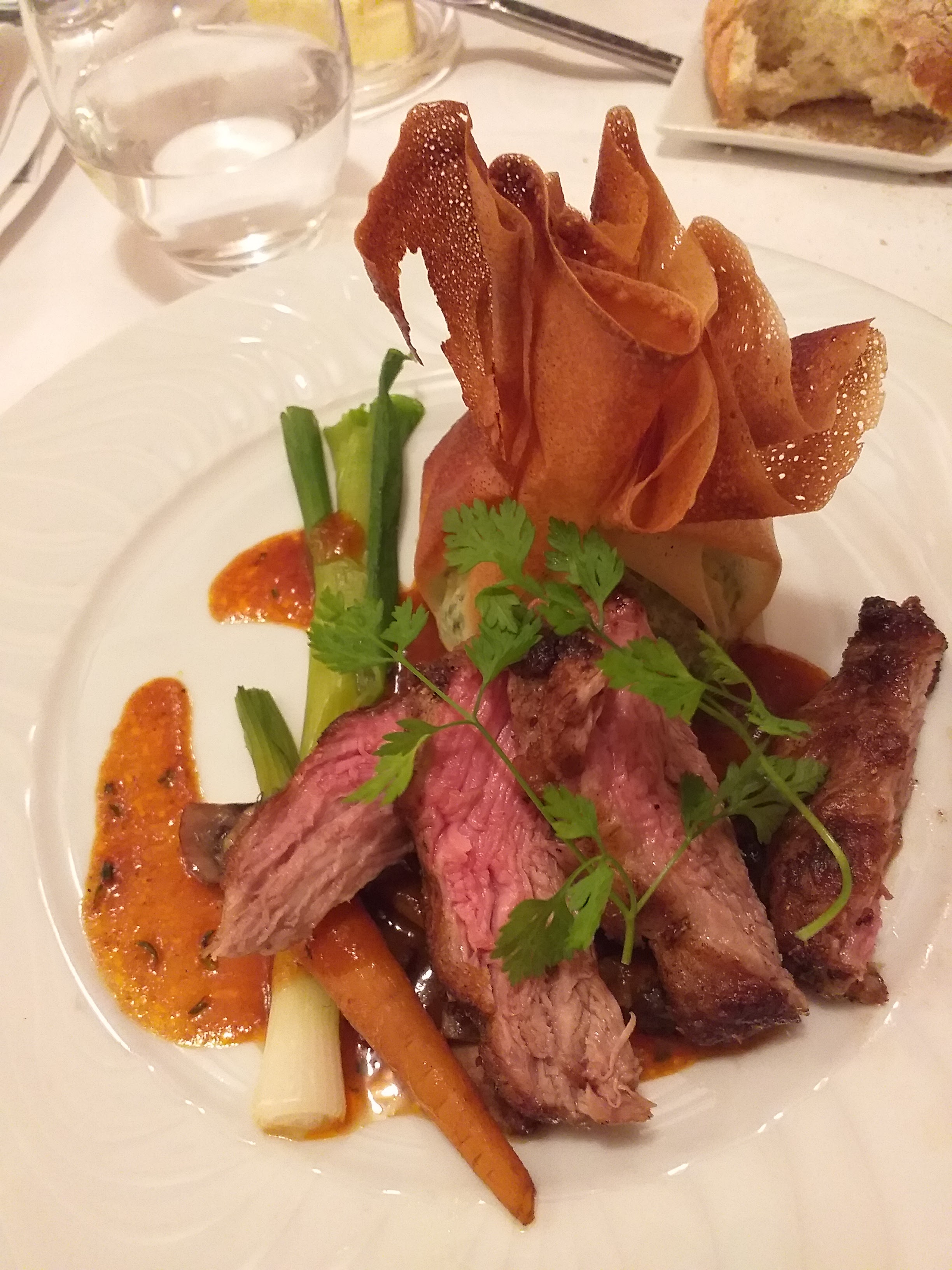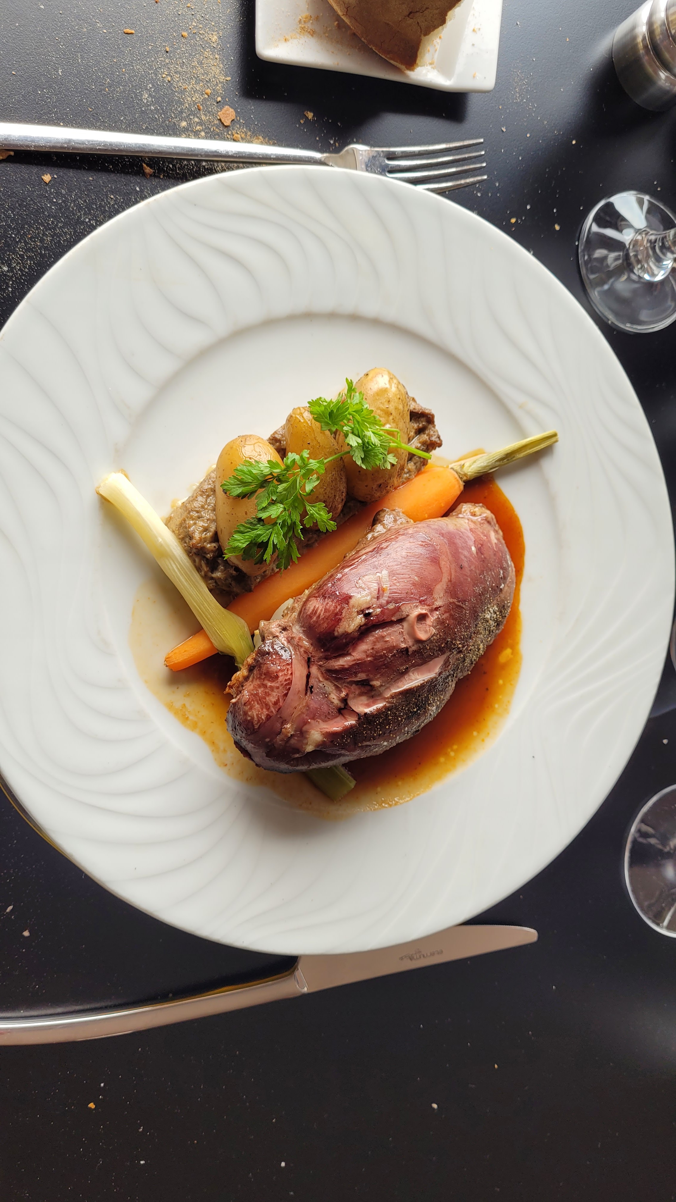 Rien de Gastronomique . Tables non nappées un jouir de Paques. Plats manquant de présentation. Agneau en croûte fort et sans croûte. De même pour le turbot. Assiette de fromages ordinaire.