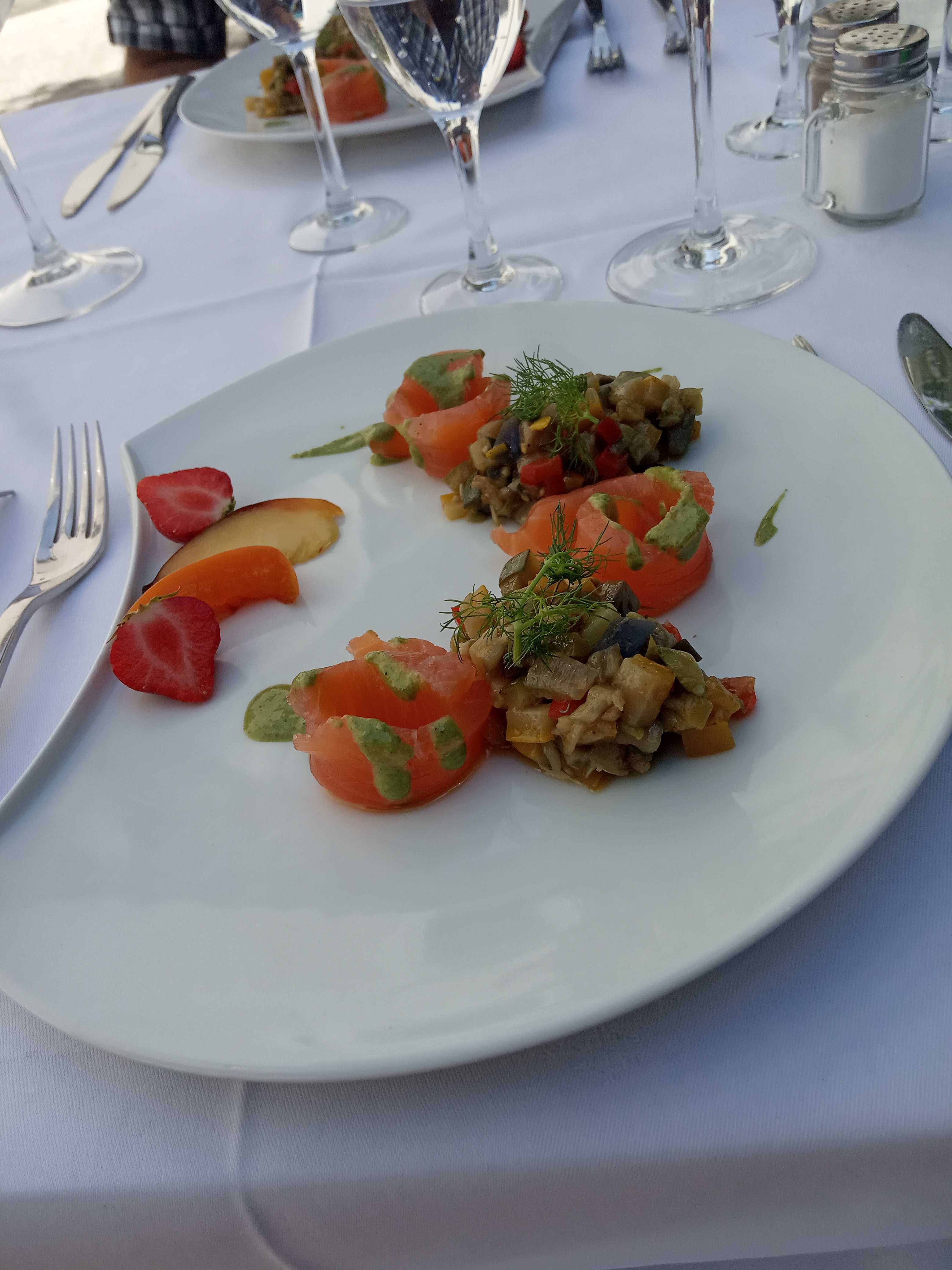Ma compagne et moi avons passé une agréable soirée au restaurant, le menu était délicieux. La décoration de la table pourrait être améliorer, les fausses fleurs sont abîmées et la table semble vide. La mise en bouche offerte est appréciable mais pas assez généreuse.