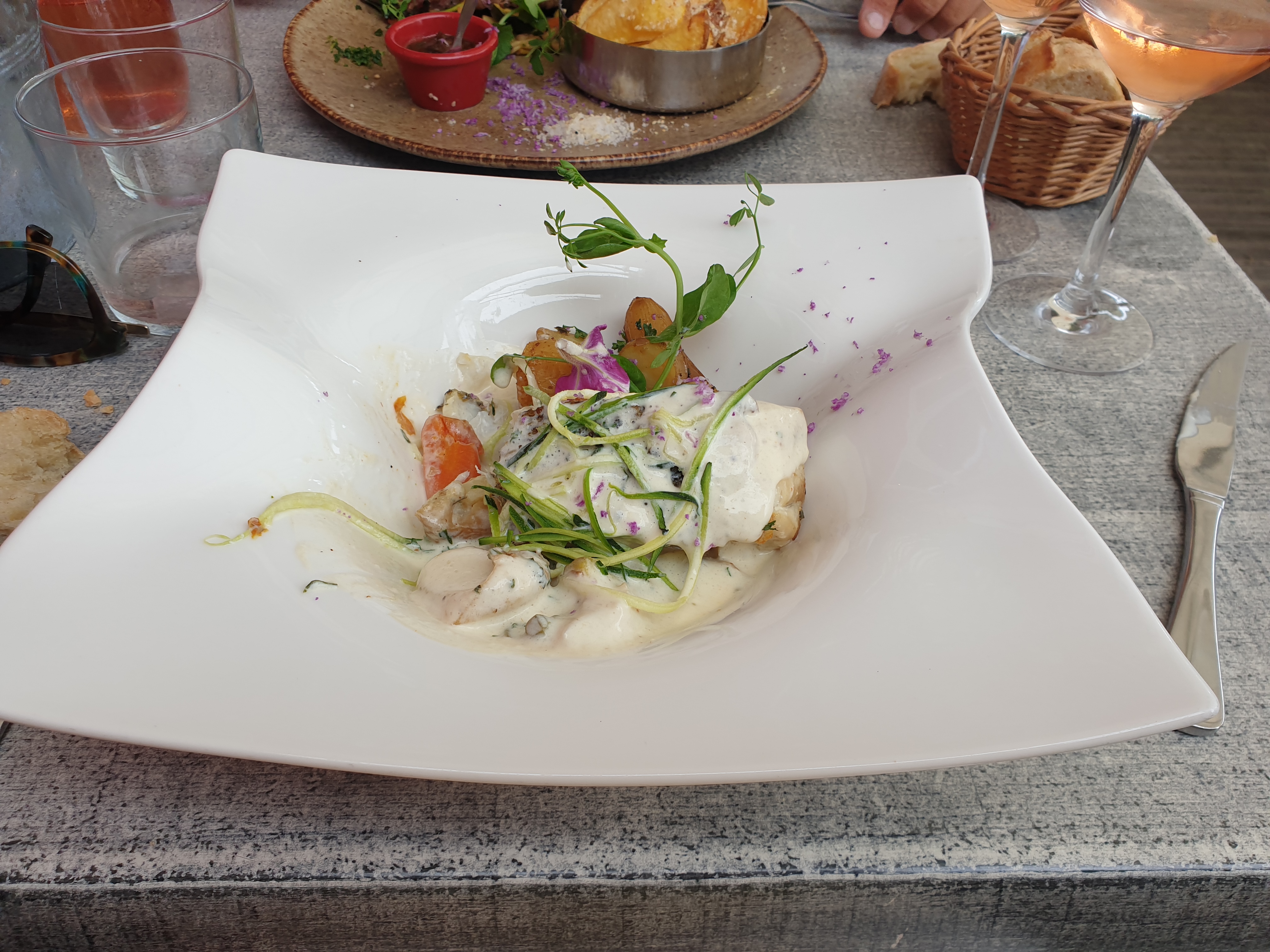Nous sommes venus un midi en juin et un soir en aout. C'était mieux en juin, menu plat du jour avec huitres en entrée et sardine à la plancha en plat, tout était excellent. En août le service était un peu plus pressé, nous rappelant à 3 reprises qu'il y avait un second service, nous avons été malades avec les huitres et les plats chauds étaient bons mais arrivés froids. Cela reste un très bonne adresse où l'on mange vraiment bien et où le cadre est splendide, la terrasse de derrière est vraiment magnifique.
