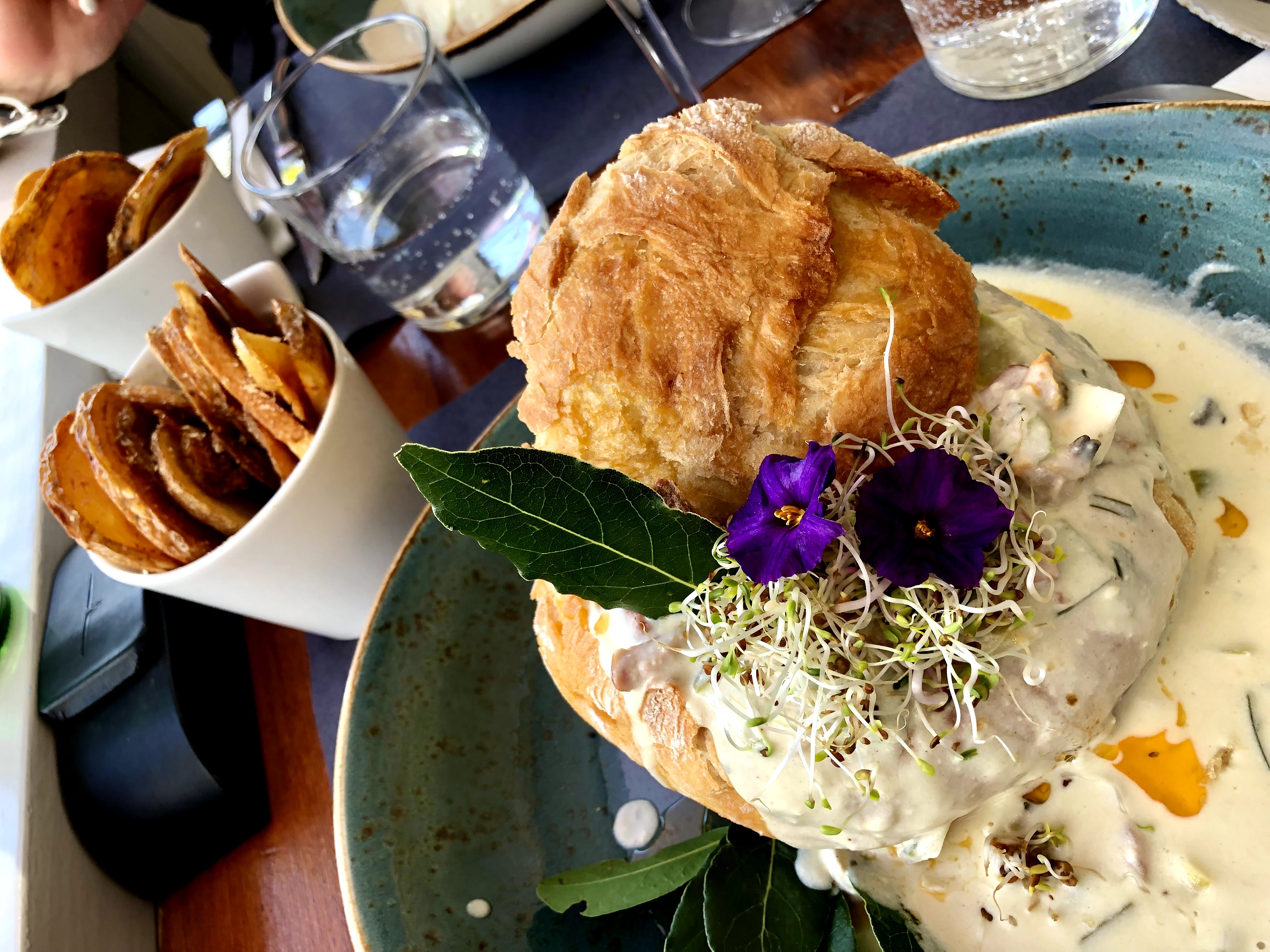 On y était déjà venu il y a 3 ou 4 ans. Apparement il y a eu un changement de propriétaire, mais cela ne change en rien la qualité de la cuisine et la beauté de la terrasse avec vue sur le marais. Sans réservation, on a eu la chance de profiter d’un désistement. Le service est impeccable, chaleureux et efficace. Pour la cuisine, une merveille ! Même le menu enfant est excellent! On a goûté au clam showder, très belle réalisation. Les prix sont tout à fait corrects vu le niveau de la cuisine et le cadre.