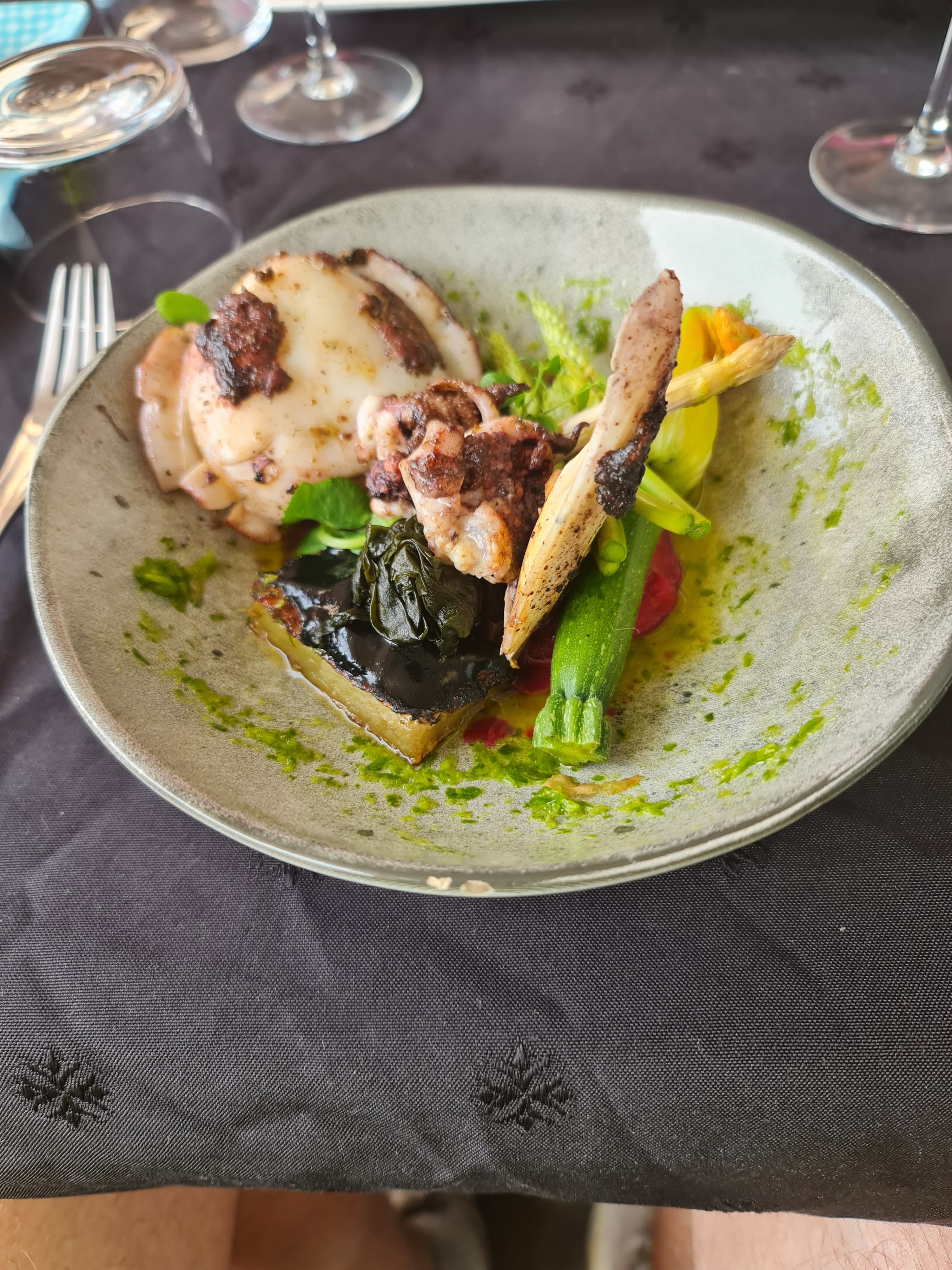 Le patron est accueillant et explique sa cuisine avec envie et plaisir. Nous nous sommes délectés avec l’assiette plaisir, un mélange de terre et mer. De passage, nous y reviendrons avec grand plaisir.