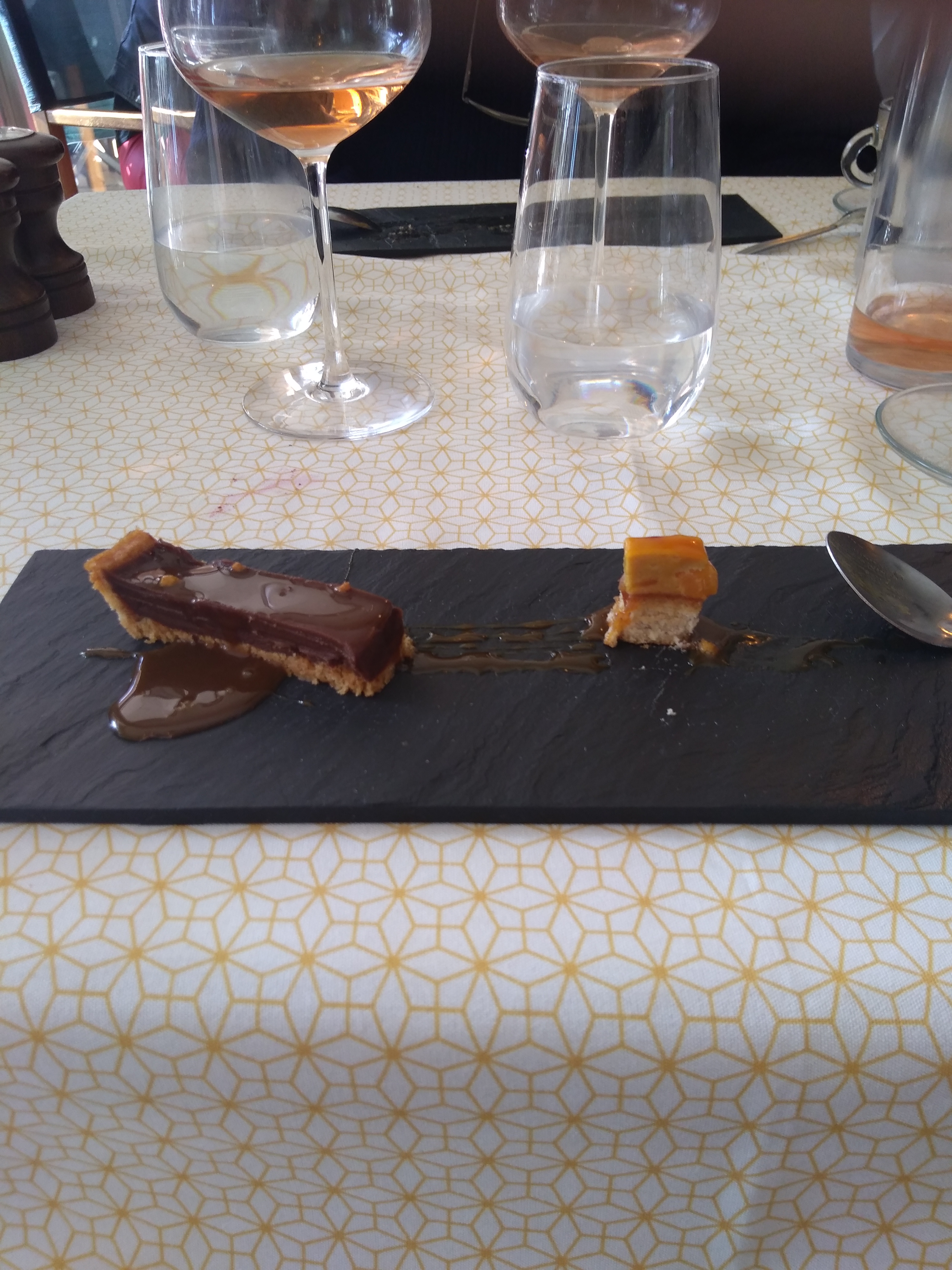Bonjour nous sommes partagés par ce restaurant. Nous avons reçu un excellent accueil. Les plats sont bien cuisinés. Mais... la quantité n'y est pas quand à l'accompagnement inexistant. Je n'ai compris le macaron à la betterave il était composé de framboises. Le chef a sorti sur la terrasse un plateau de porc rôti très appétissant à plusieurs reprises. C'était très spectaculaire surtout quand nous sommes resté sur notre faim. Nous avons fini notre repas chez un glacier dans les rues de Sète. Dommage