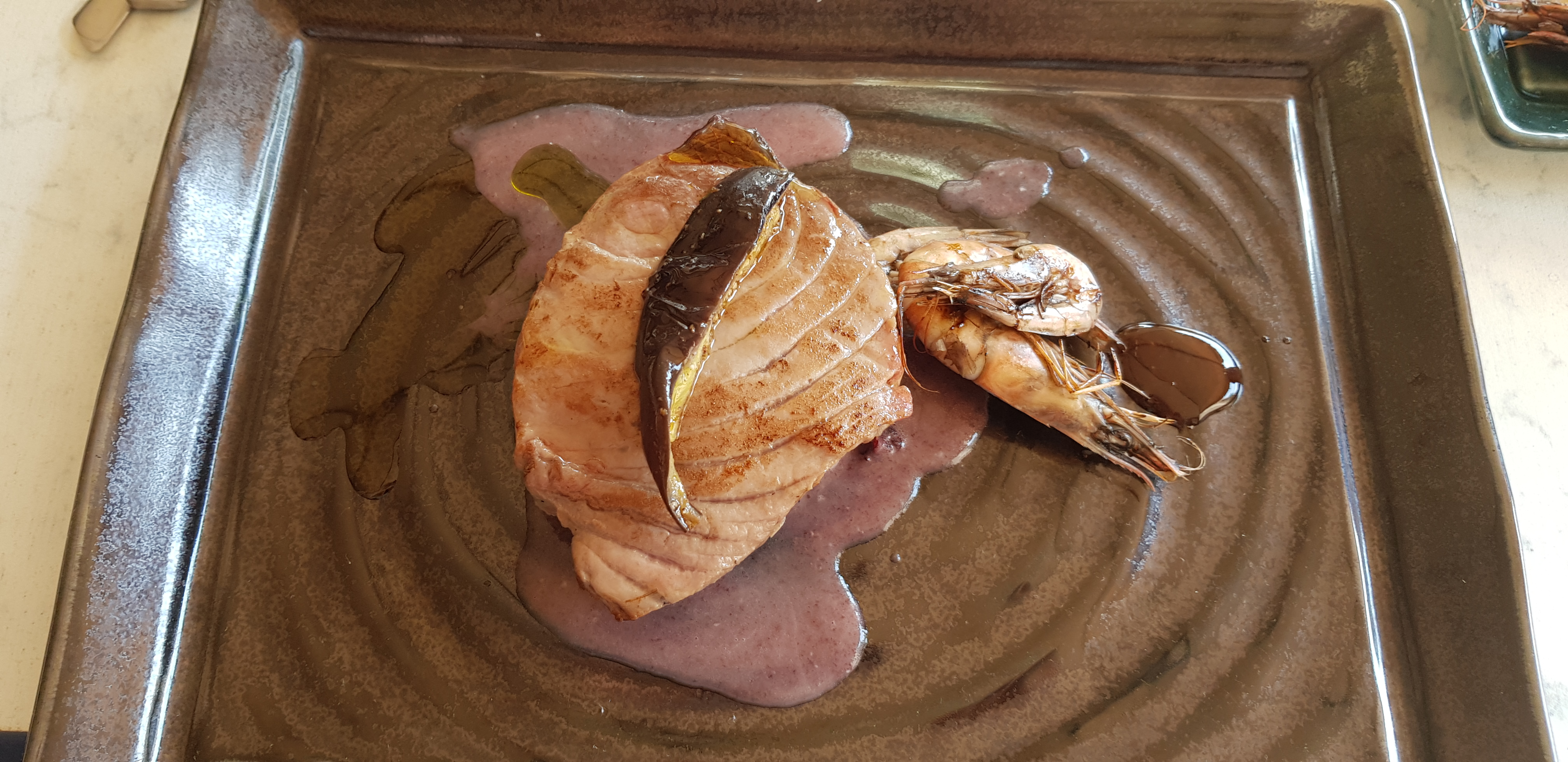 Une soirée sympathique avec de bons produits frais. Chance, assiette spéciale pour l'anniversaire du chef!