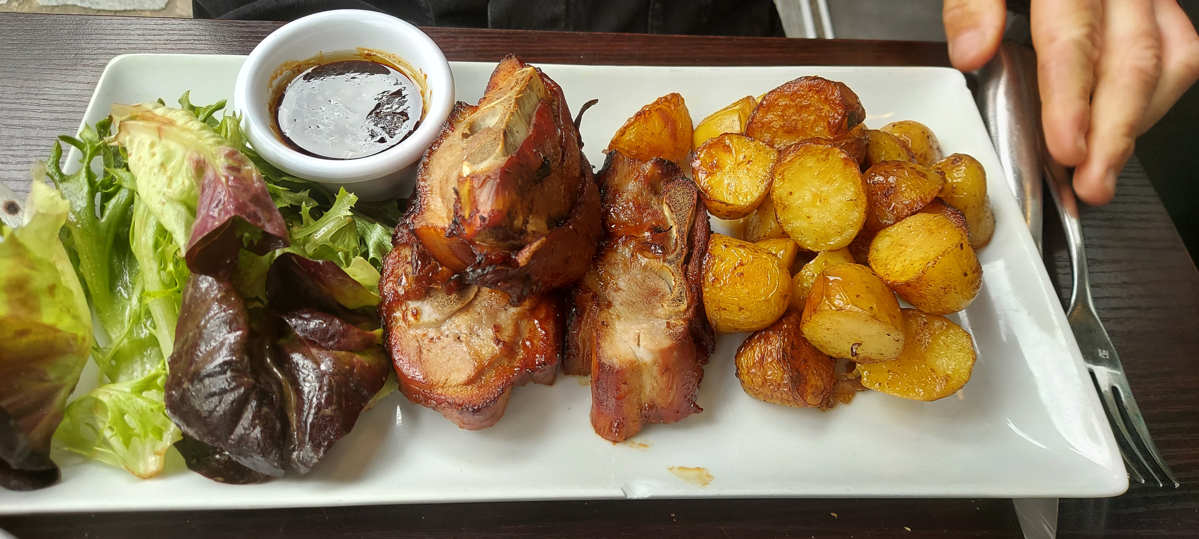 La viande est trop bonne ainsi que les pommes de terre grenaille Le hamburger manque un peu d’ingrédients
