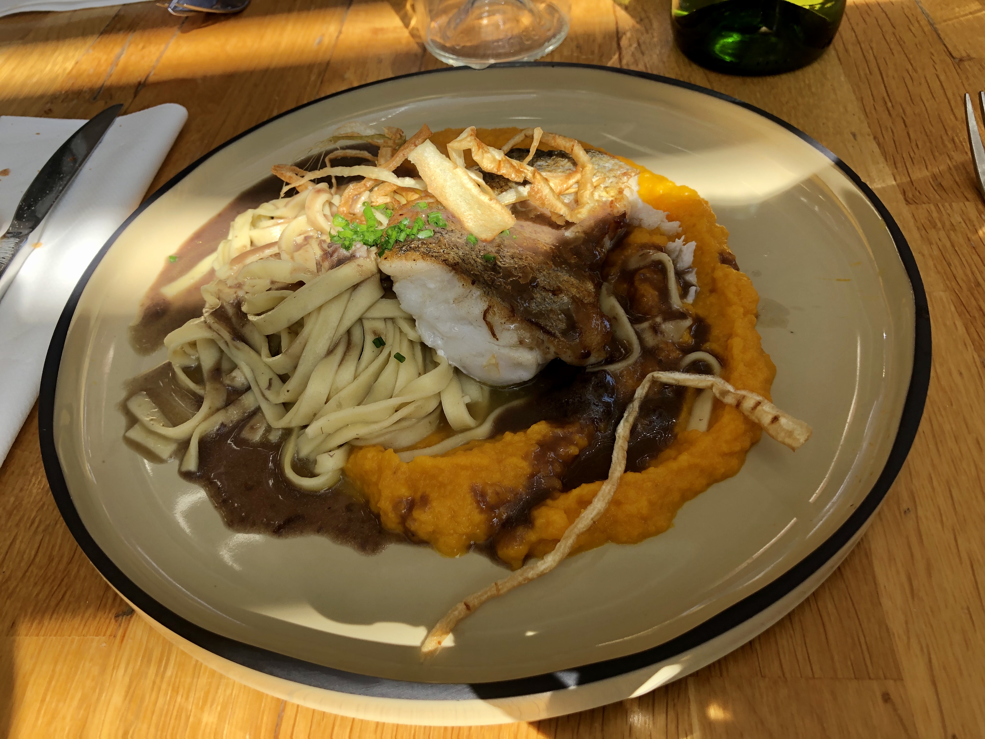 Déjà le troisième déjeuners dans ce restaurant et jamais déçu. Que ce soit avec du poisson ou de la viande qualité et quantité toujours au rendez-vous. Toujours des produits de saison. En prime du personnel toujours souriant, agréable et serviable même avec des clients comme nous qui changent de table. Sans oublier du vin de qualité avec des serveurs à notre écoute selon nos goûts. Bravo à Sébastien.