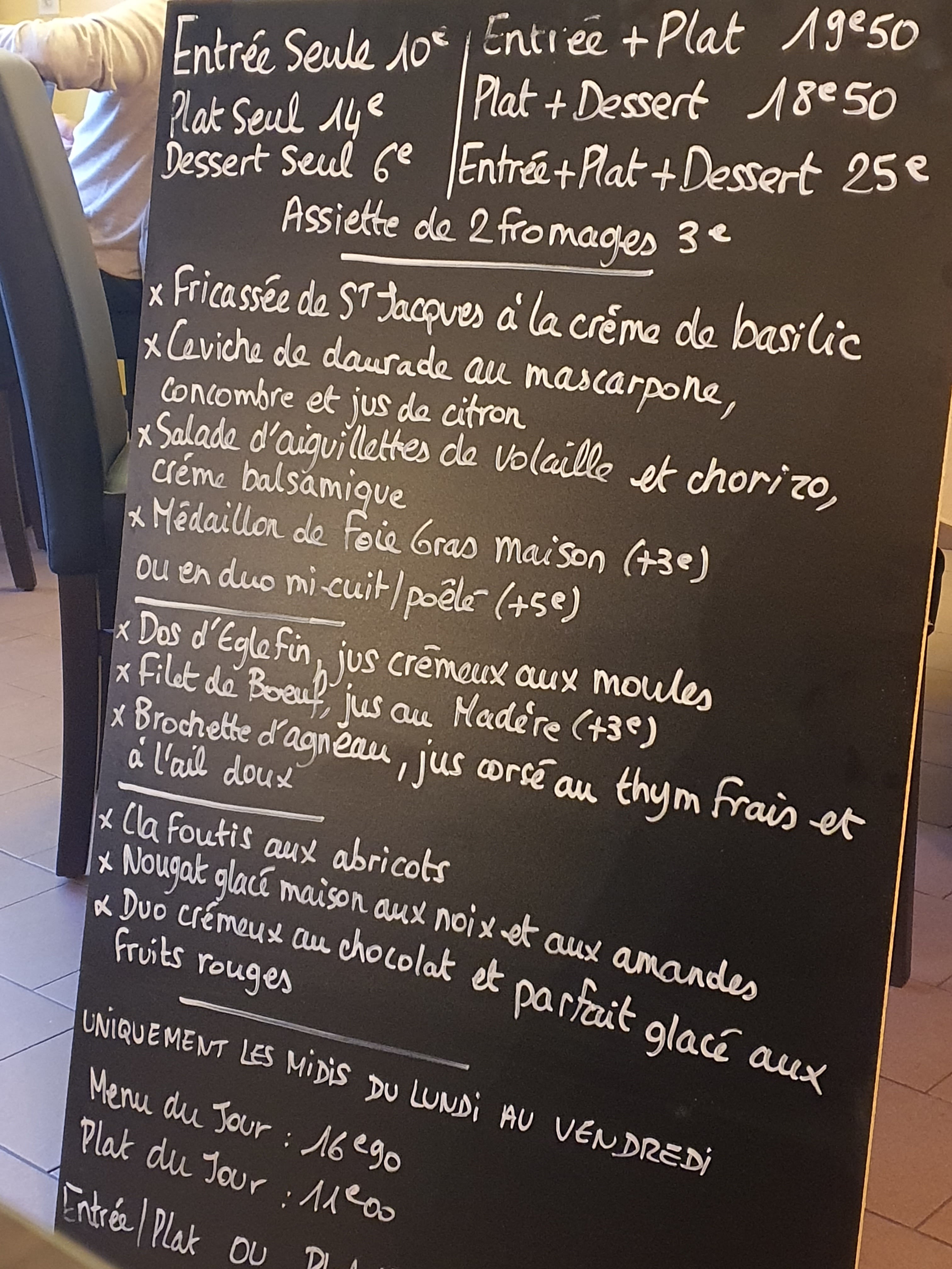 Que des produits frais ! D'où une petite carte mais un choix correct. Le prix est de 25€entrée, plat, dessert ce qui est tout ta fait normal. Très bon accueil. Ils se sont même arranger pour nous recevoir à la dernière minute. Je recommande.
