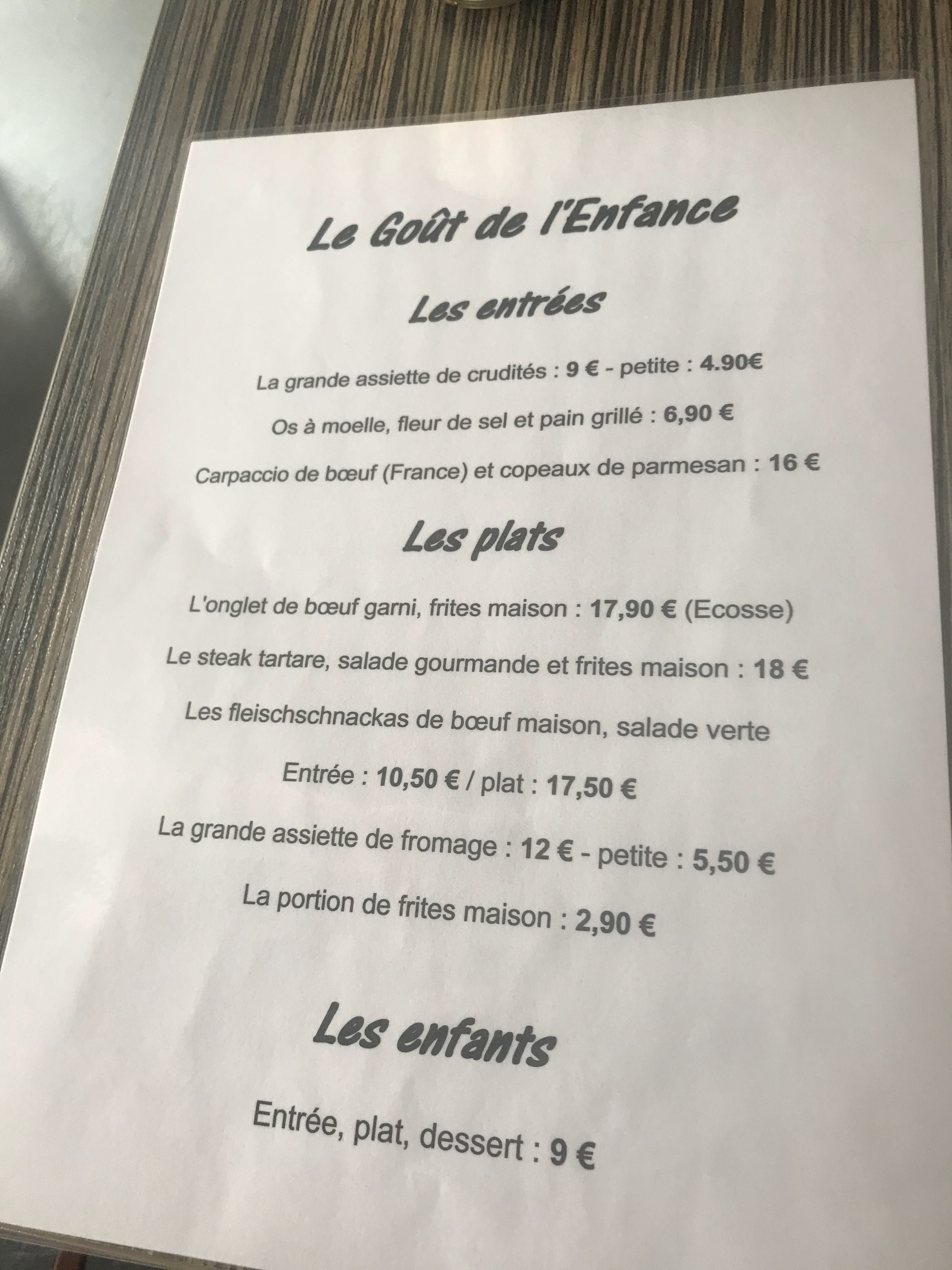 Tarifs correct, que du fait maison, belle carte des vins.