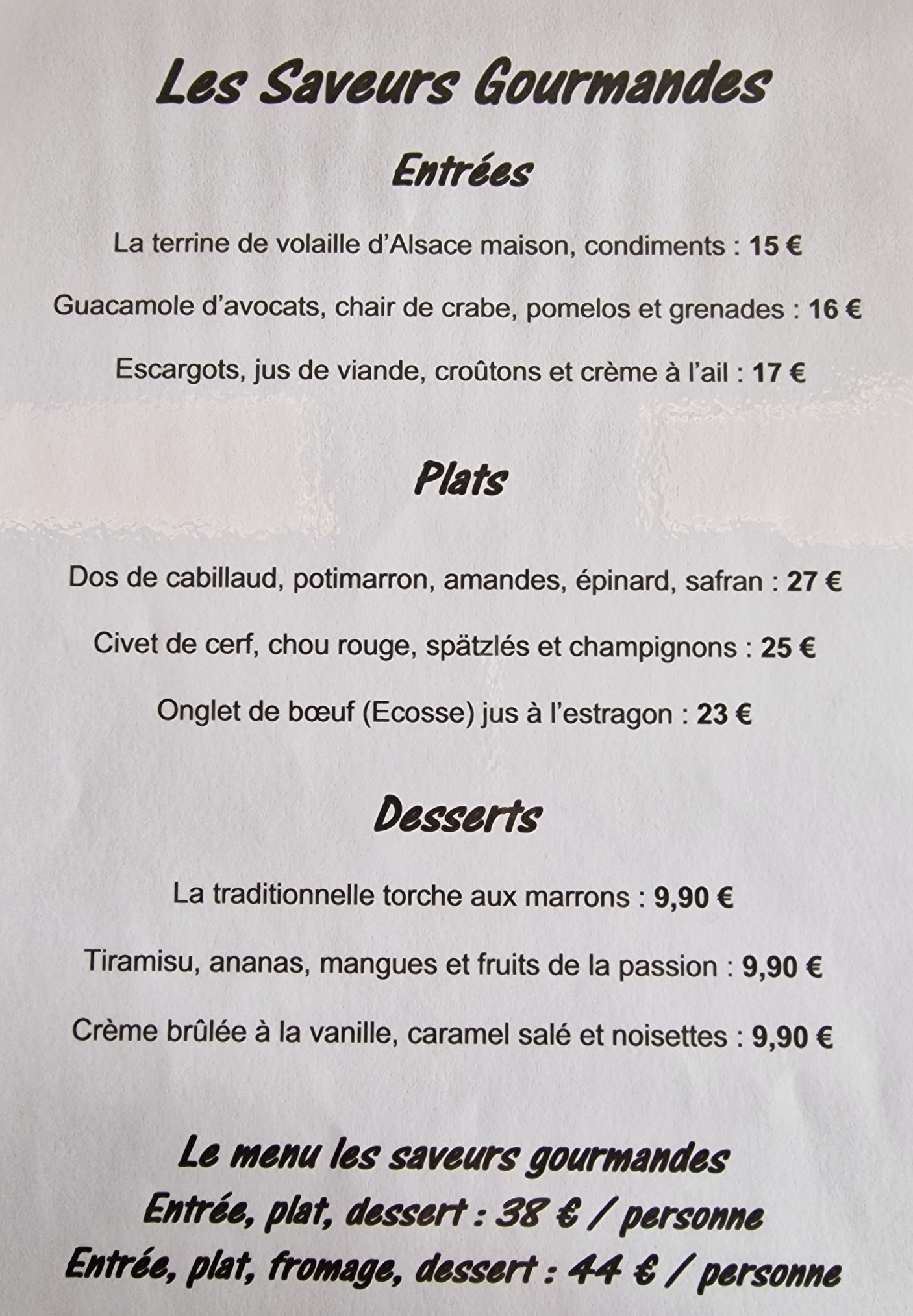 Nous avons pris le menu du jour. Très bon rapport qualité/prix. Enfin du vrai fait maison ! Très bon, je recommande vivement. Si je retourne à Colmar, je goûterai les plats à la carte qui avaient l'air succulents.