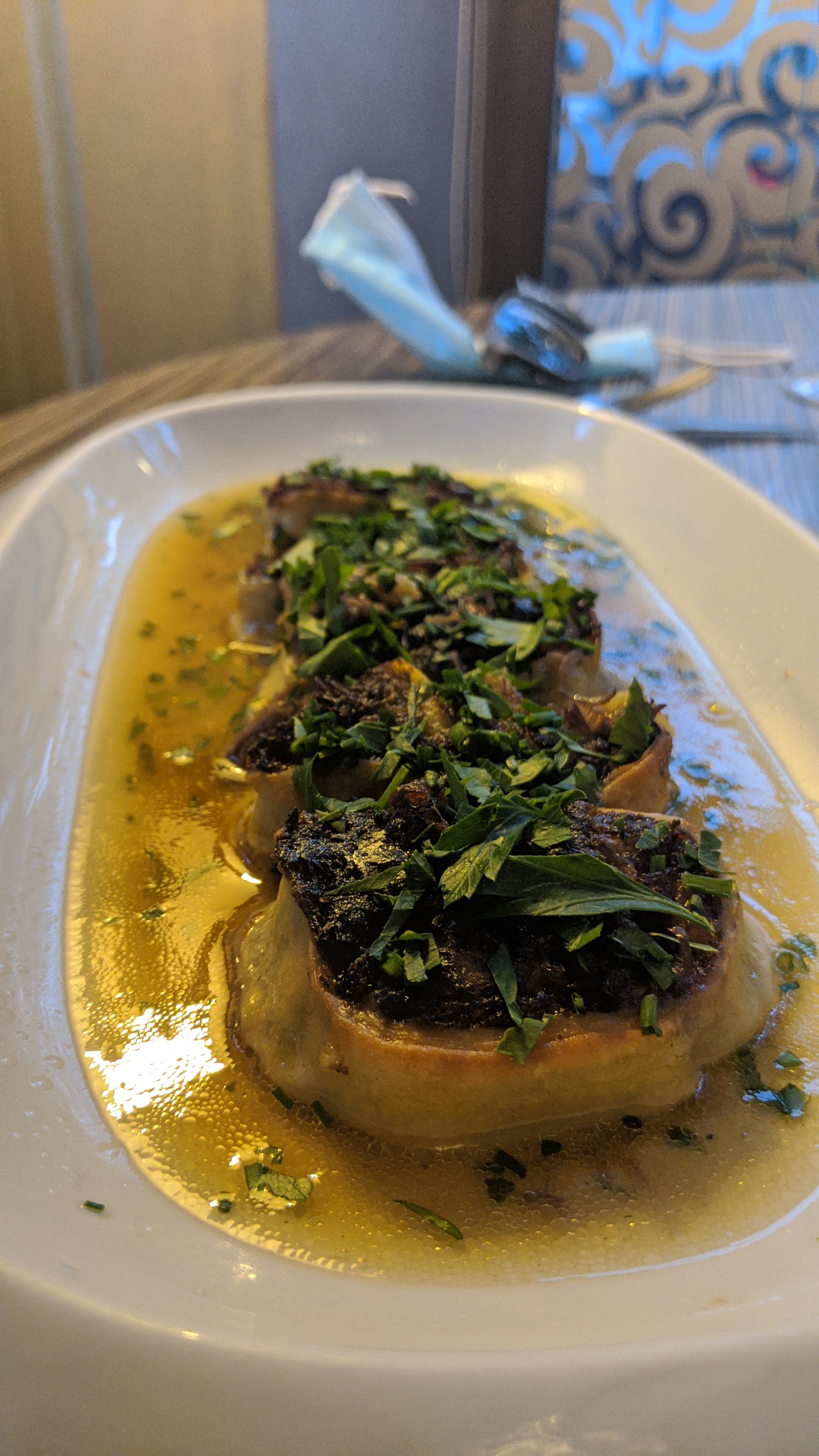 Une très bonne soirée grâce à un service impeccable avec des personnes souriantes et qui mettent à l aise....os à moelle très bien servi, quand au menu à 38€ il est très bon et très copieux... Une belle adresse sur Colmar, continuez comme cela !!!