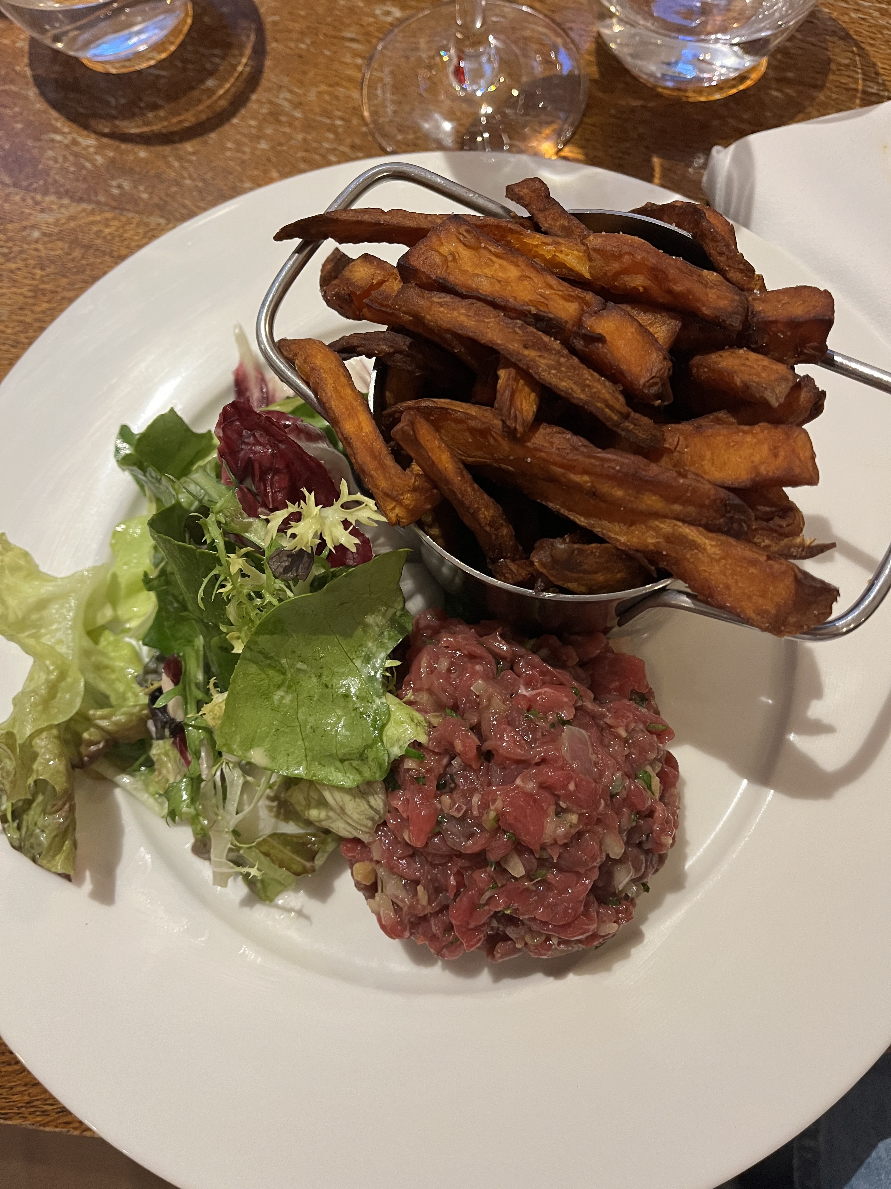 Très déçu car à voir tous les excellents commentaires je m’attendais à quelque chose d’extra. Malheureusement très quelconque, terrine fade, tartare trop salé, vin décevant, service lent et obligés de faire signe pour attirer l’attention. Je ne reviendrai pas.