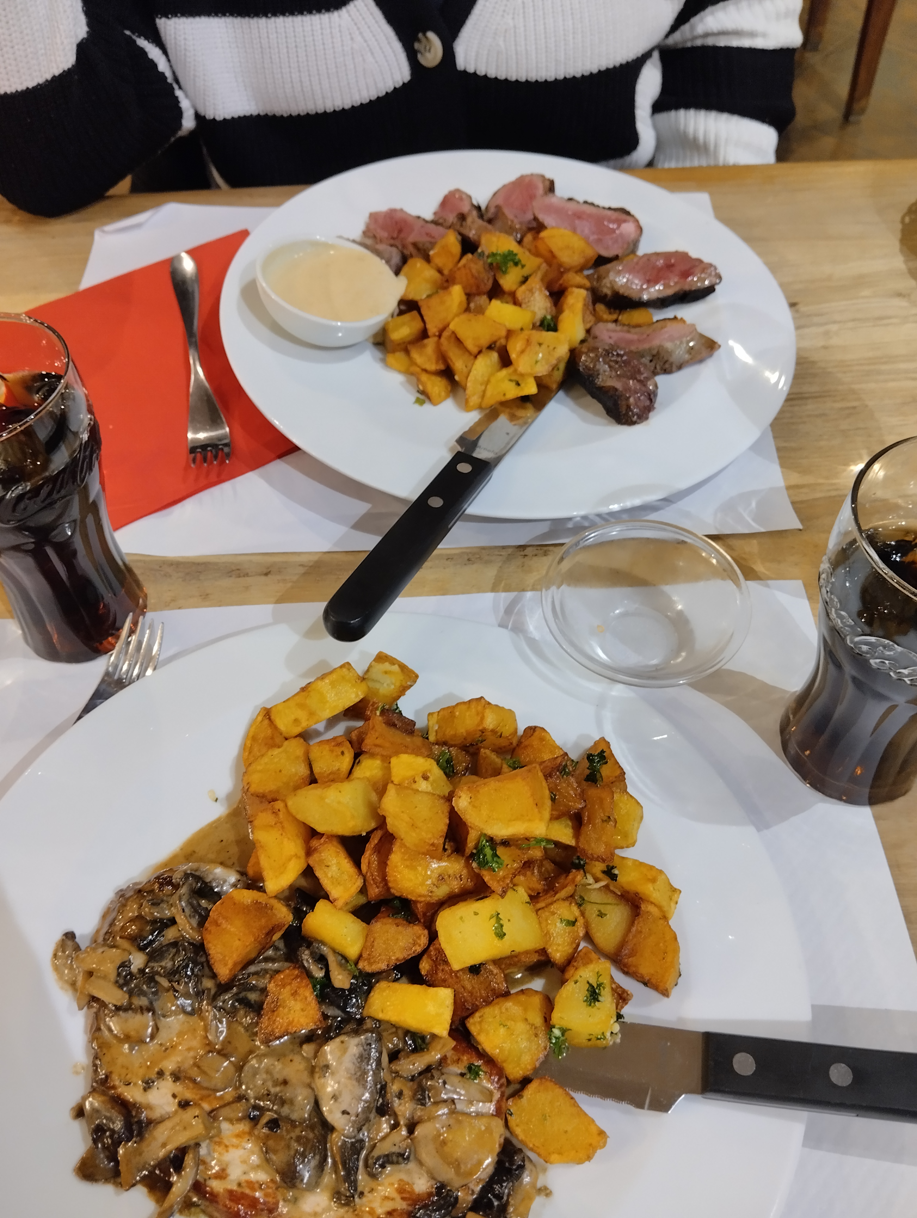 Cuisine familiale goûteuse (j'ai pris des rognons de veau aux champignons à la crème). Rapide. Serveuse efficace et sympathique.