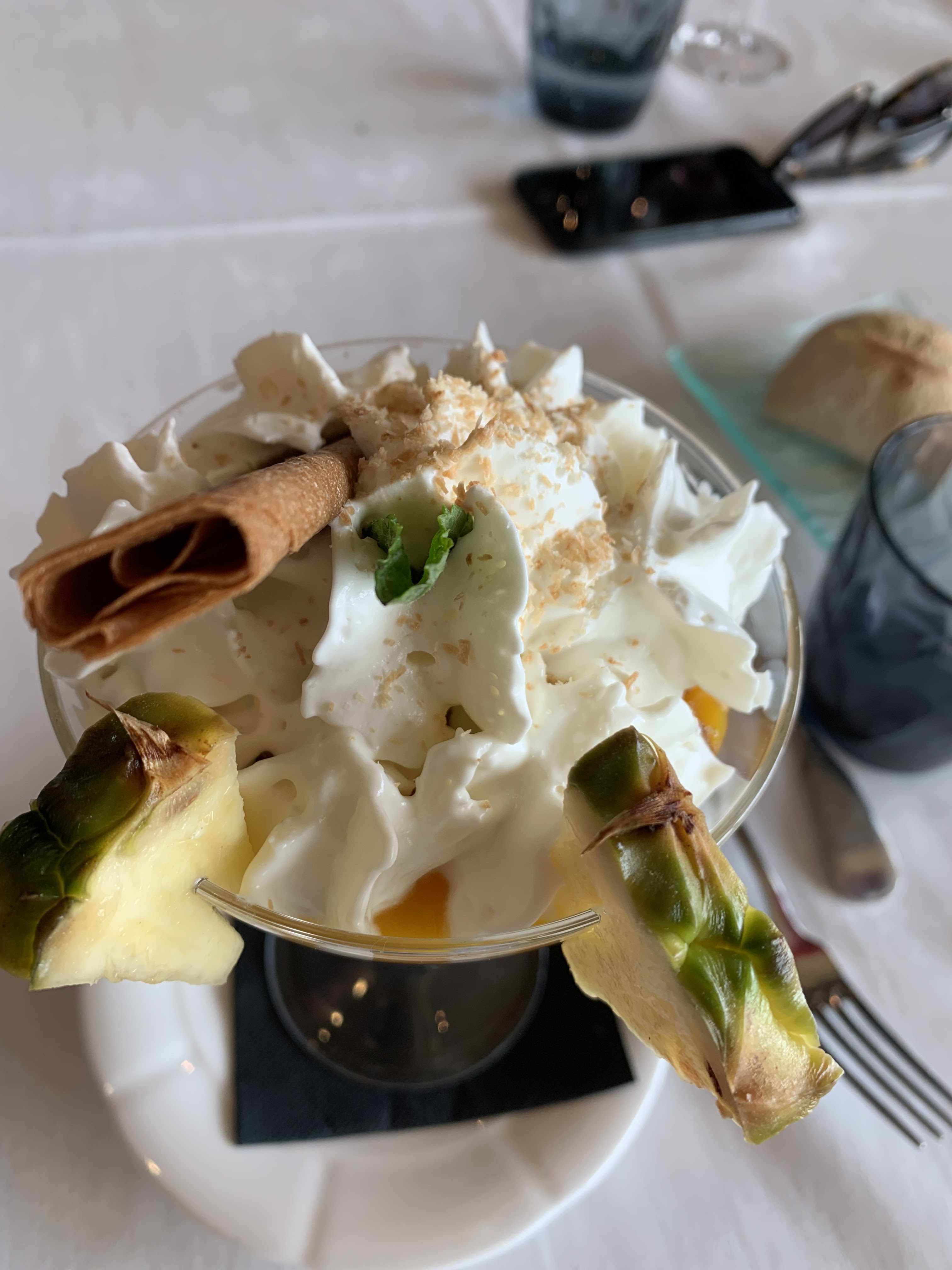 Très déçus.....le service laisse a désirer. Le personnel s'interpelle d'un bout à l'autre du restaurant 🙄 Le vin est posé sur table sans nous servir🤔 On nous laisse ouvrir nous même la bouteille de ICE tea🙄 Pas de déco sur la table, nappe froissée... Gros ratage sur les desserts,dont les glaces maison ont aucun goût et sont pleines de cristaux d'eau gelée 😱 A ce prix : 30 euros plat et dessert sans les boissons, on s'attend à bien mieux. D'ailleurs avant nous n'étions jamais déçus.... Cela fait vraiment mal au cœur de payer ce prix pour cette prestation de piètre qualité. Cerise sur le gâteau : on nous demande notre avis sur le dessert que nous n'avons quasiment pas mangé... Je fais remarquer que la glace n'avait pas de goût ni la compotée de mangue, et on nous dit que c'est faux 🥴. Pourtant nous l'avons goûté à 2, elle n'avait aucun goût. On 'nous fait remarquer que c'est faux, attitude très commerciale. Effectivement ce dessert est déduit de notre note, sans que nous en fassions la demande,ce qui est la moindre des choses. Bref.... Adresse rayée de notre carnet , l'attitude de la propriétaire nous ayant achevé