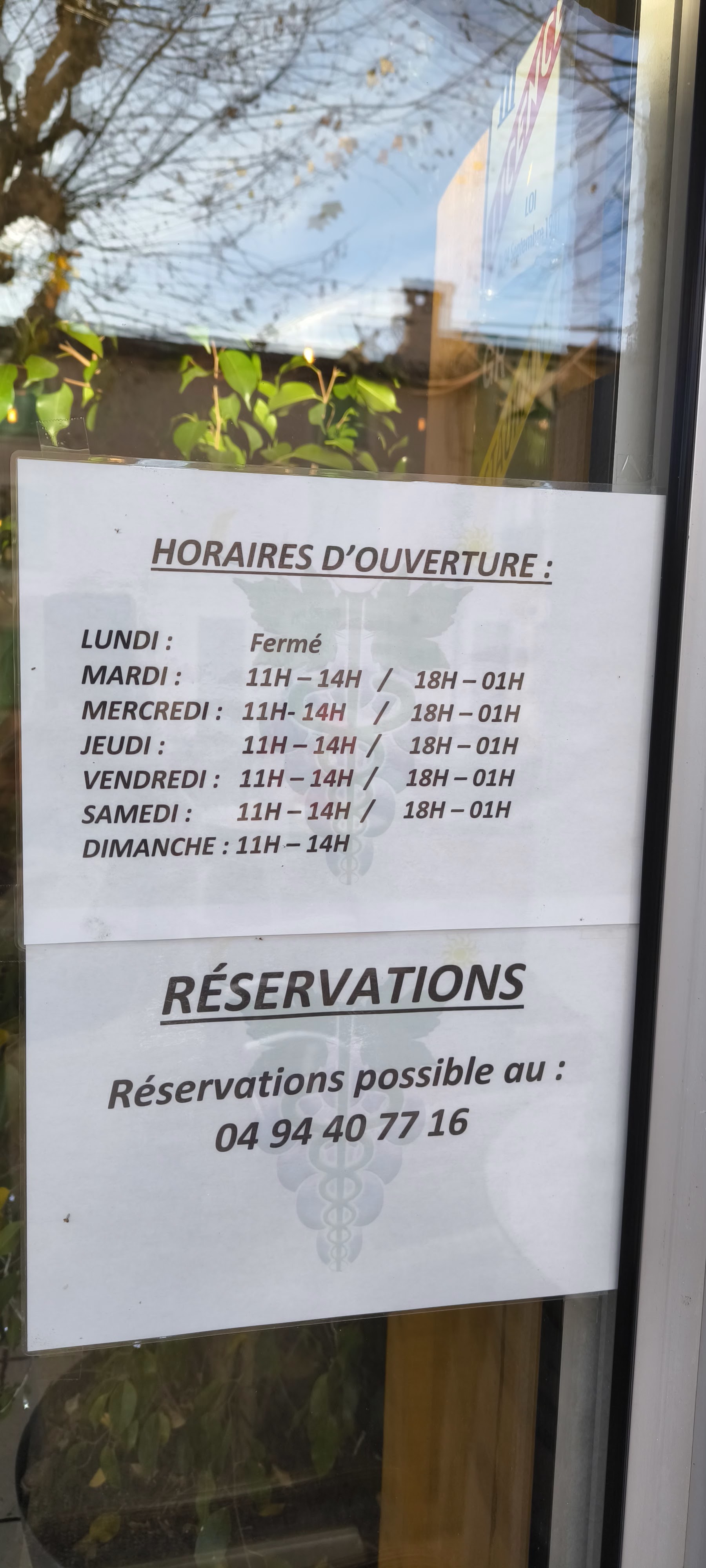 Incontournable a Bagnols en Forêt ! Un patron accueillant, sympathique, avec de la culture et de l'humour. Un établissement charmant, chaleureux et convivial ! Des plats faits maison a ne surtout pas consommer car vous ne pourrez plus vous en passer ! Les prix sont tout doux en plus de tout cela. Des soirées à thème sont régulièrement proposées également ! C'est ce qu'il nous manquait à Bagnols et depuis un an nous l'avons ! Ne manquez pas cette adresse a laquelle vous passerez forcément un très bon moment. En été vous pourrez profiter de la terrasse ensoleillée et animée ! Sans aucun doute...mon restaurant préféré a Bagnols !