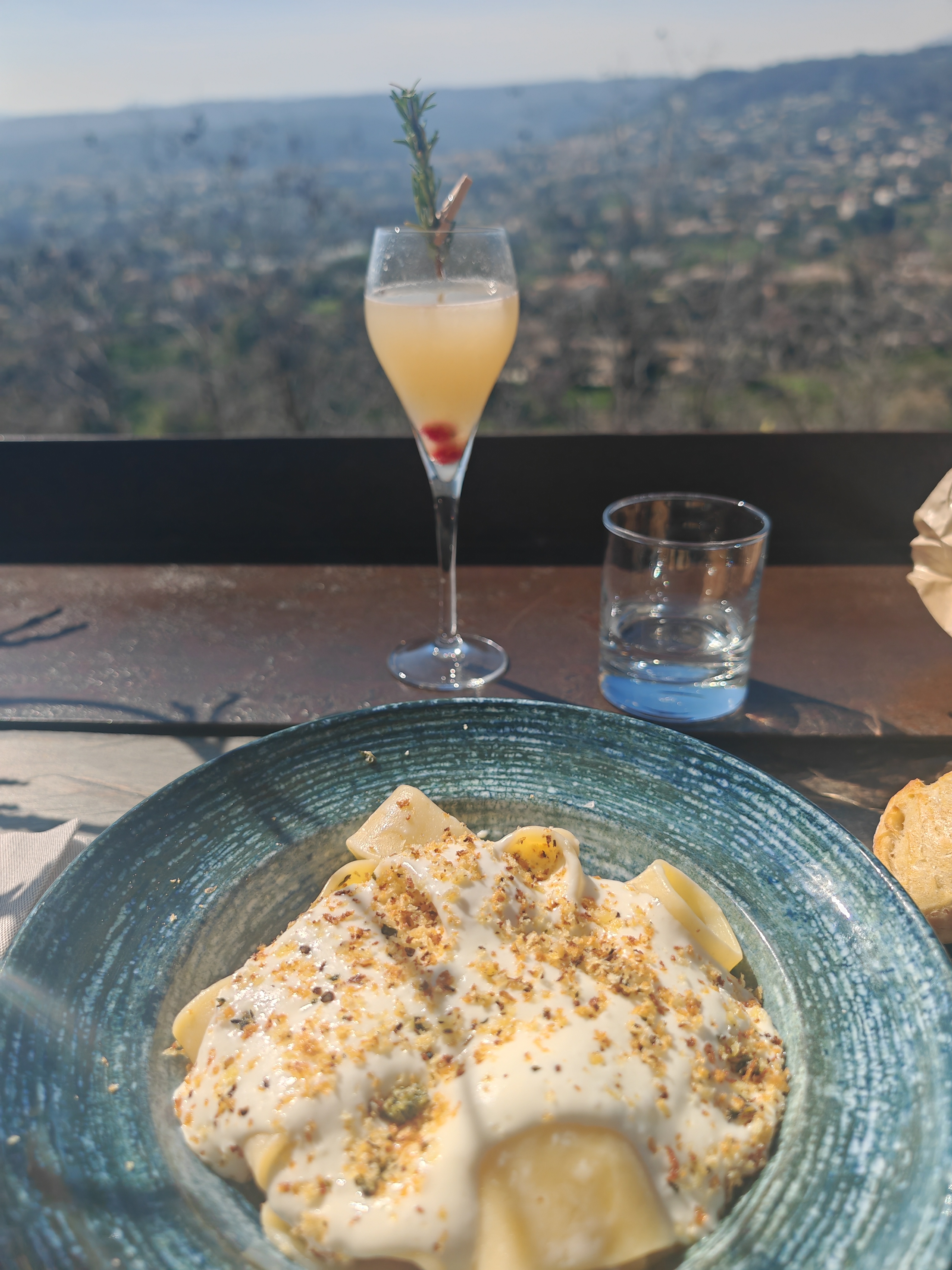 Magnifique! Nous étions de passage a Saint Paul de Vence le dimanche 24, nous sommes passés devant ce restaurant dans la matinée et avons appelé pour réserver, nous nous y sommes pris assez tard, mais malgré cela le personnel très aimable et accueillant a réussi à nous trouver une table. Le service à table était également impeccable. La vue est splendide et la décoration du restaurant est très belle. Le repas était délicieux et les aliments très joliment disposés. Les toilettes, quant à elles, étaient aussi décorées et très propres. Je recommande vivement ce restaurant!