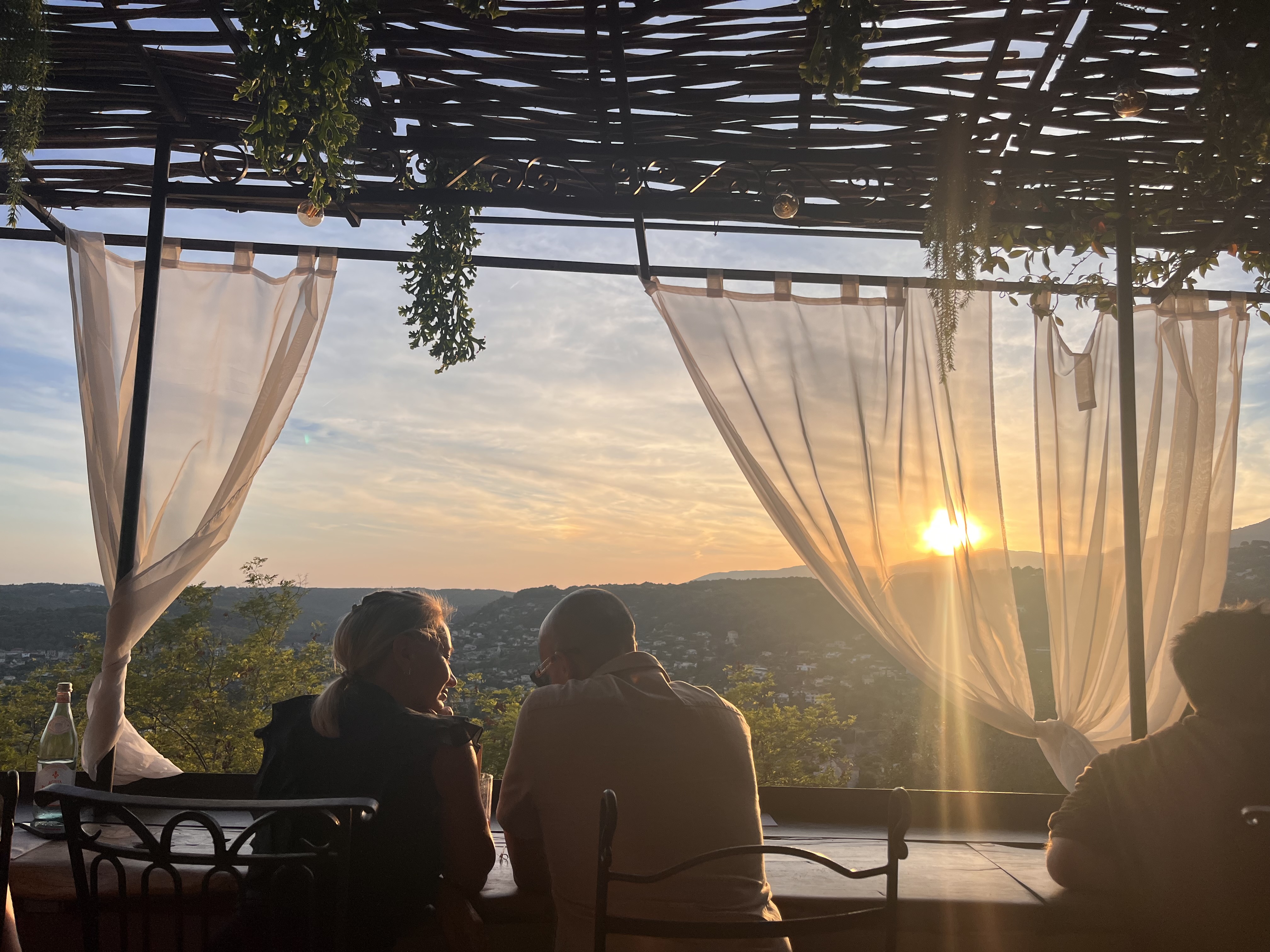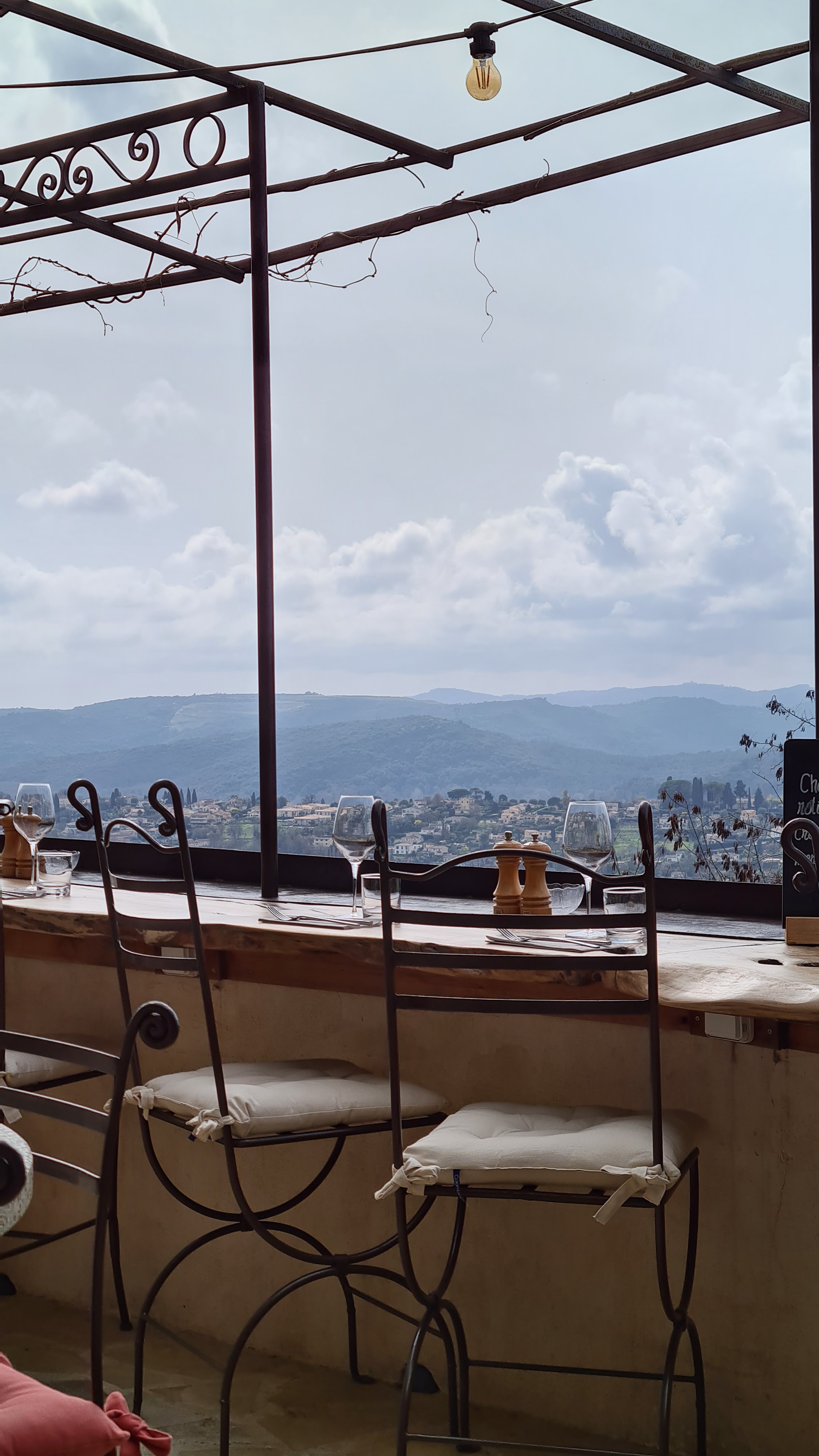 La plus belle terrasse de Saint Paul de Vence! Excellent accueil. Il faut préciser dès l’arrivée que l’on souhaite apprécier le coucher de soleil et prendre son temps, le personnel ajuste le service selon vos souhaits. Cuisine originale et légère. Réservation conseillée . Un très belle expérience.