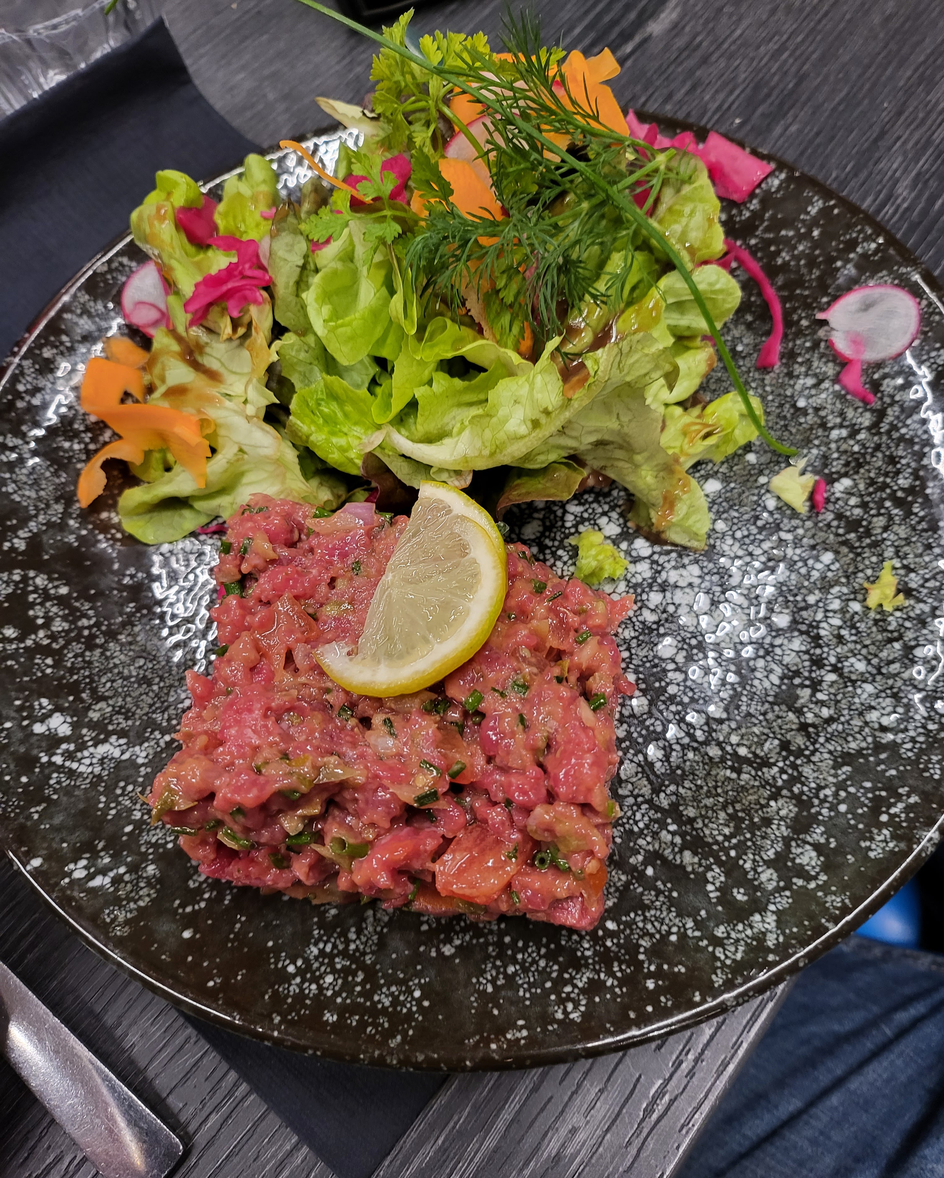 Un endroit vraiment exceptionnel, une cuisine vraiment incroyable. Mon conjoint et moi même avons pris un mille feuille de saumon en entrée et une terrine de Foix gras ainsi que 2 burgers spéciaux qui étaient vraiment un régale 😉 Je vous conseille cet endroit , le service était vraiment super et tout le personnel est très accueillant.