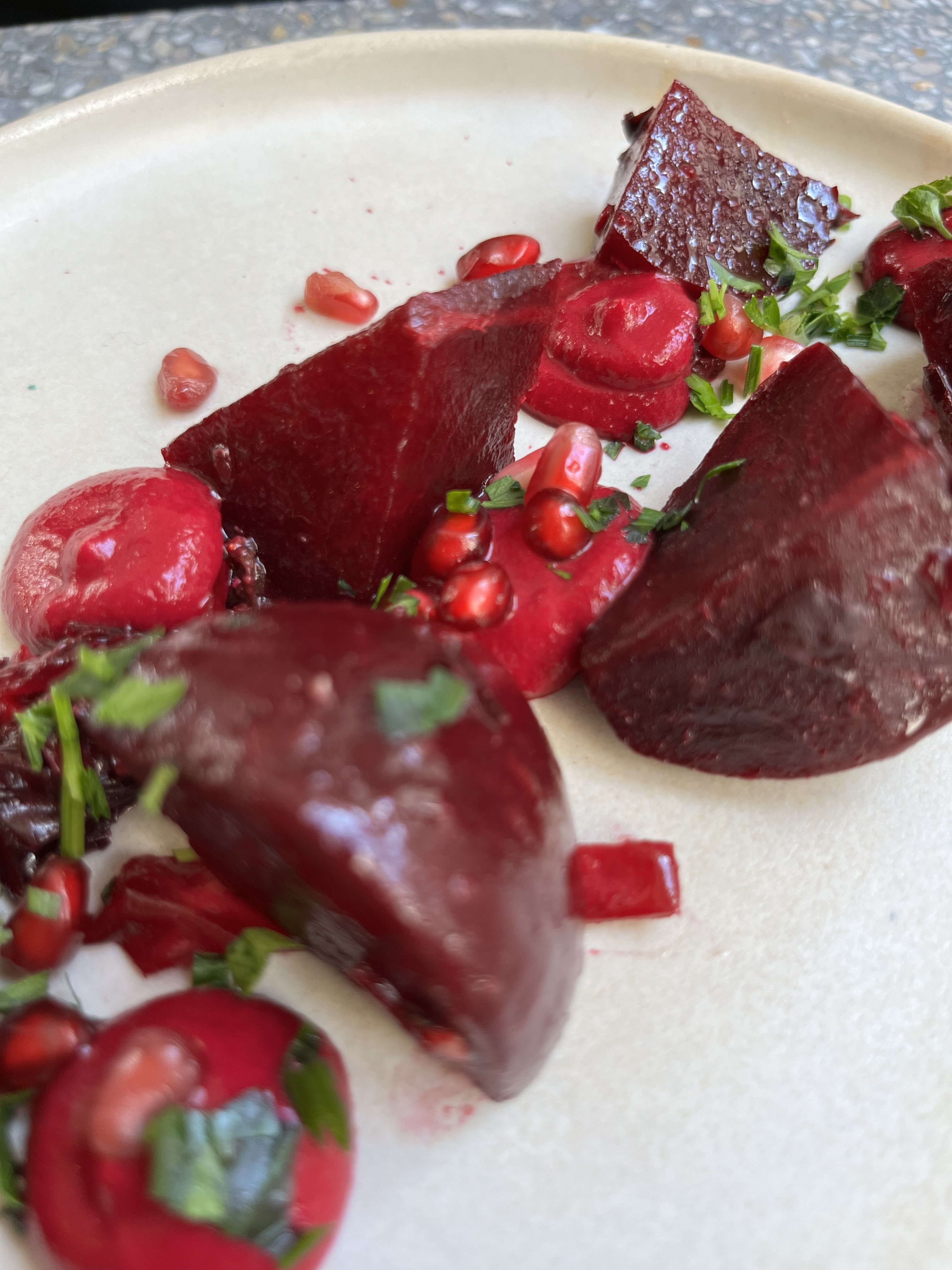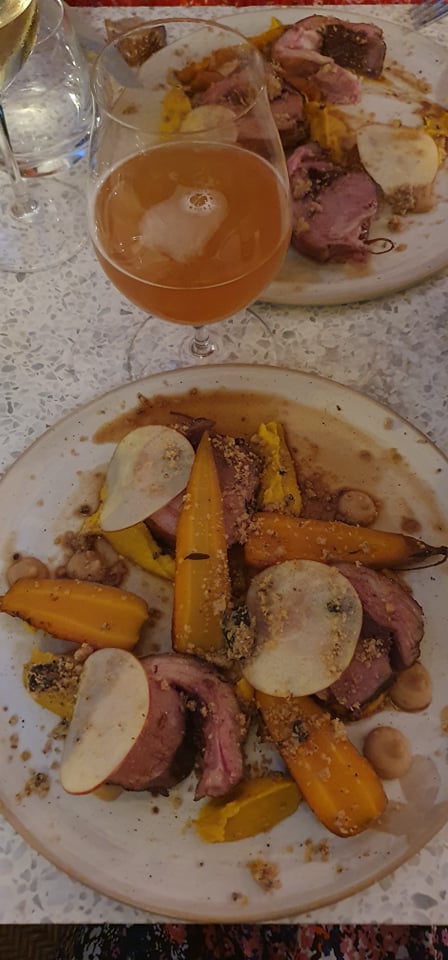 Quand on a la variété de la betterave que l'on va manger et le nom de celui qui l'a cultivée, on se dit qu'on est bien niveau traçabilité. Quand en plus, c'est (très) bien cuisiné et (très) bien servi, on se dit qu'on est pas mal du tout. Clin d'œil aux excellents panais panés et au plat végétarien qui n'a rien à envier aux plats de viande et de poisson.