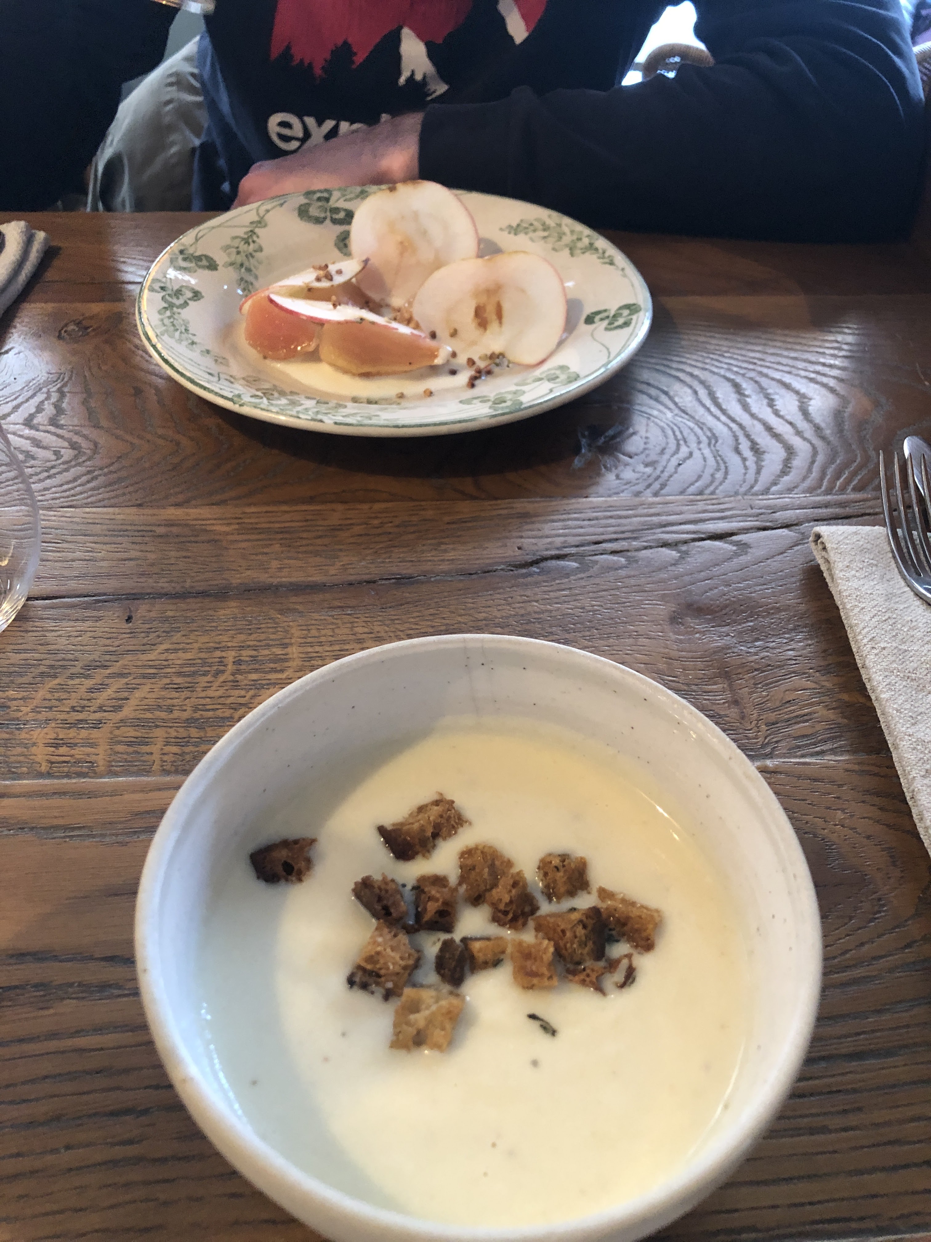 Nous nous sommes rendus dans ce restaurant avec beaucoup d'enthousiasme à la vue des commentaires. Le cadre est sympathique mais nous avions été installés à une table pour à côté de la porte d'entrée. Malgré le rideau, le froid glacial entrait sans cesse avec les allers/venues des autres clients et des groupes... Quand aux plats, l'entrée (soupe au choux pour ma part) était bonne mais très ordinaire, présentée dans un bol type cantine minuscule sans aucune décoration. Un plat un peu plus travaillé mais betterave trop présente à mon goût. Un dessert également très ordinaire (voir photo). En bref, l'idée est très bonne, les serveuses sont sympathiques et souriantes, la salle est joliment décorée. Par contre, qualité des plats très approximative... et des assiettes sans aucune présentation. Note de 80 euros à deux. (deux entrées, deux plat, un dessert à partager et deux verres de vin/personne). Dommage !