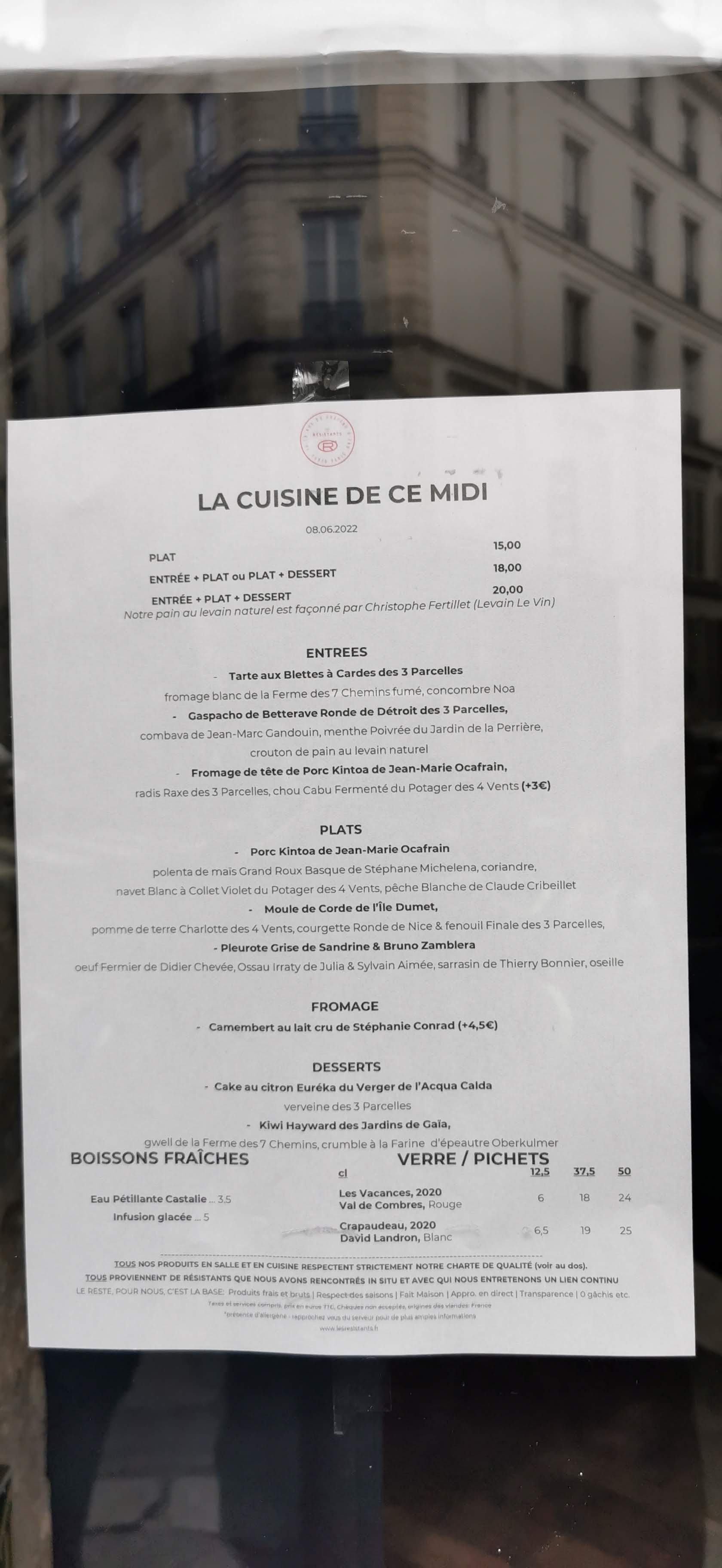 Le seul restaurant de Paris à bosser en direct avec les producteurs, à travailler les carcasses entières, à changer sa carte aussi fréquemment. Une prouesse de travail, un défi relevé haut la main et qui en fait une expérience unique. Tout est réussi et il faut vraiment saluer la mission et la qualité du résultat. C’est évidemment une grande claque et une aventure à soutenir, tout en profitant de la qualité du service, du lieu, et des produits.