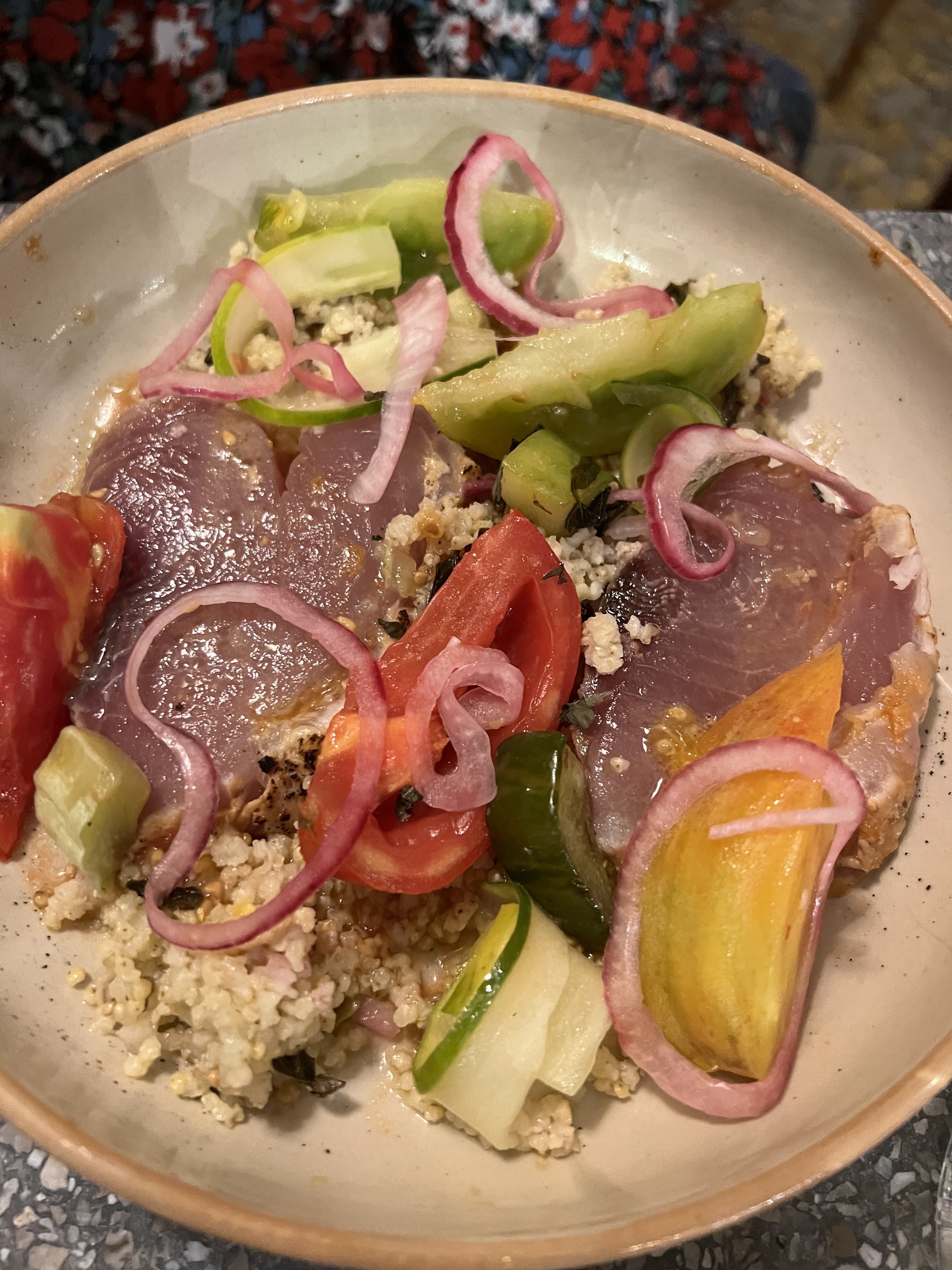 Tout était excellent, super frais, bien pensé, préparé ! Le décor magnifique également Le pain est exceptionnel