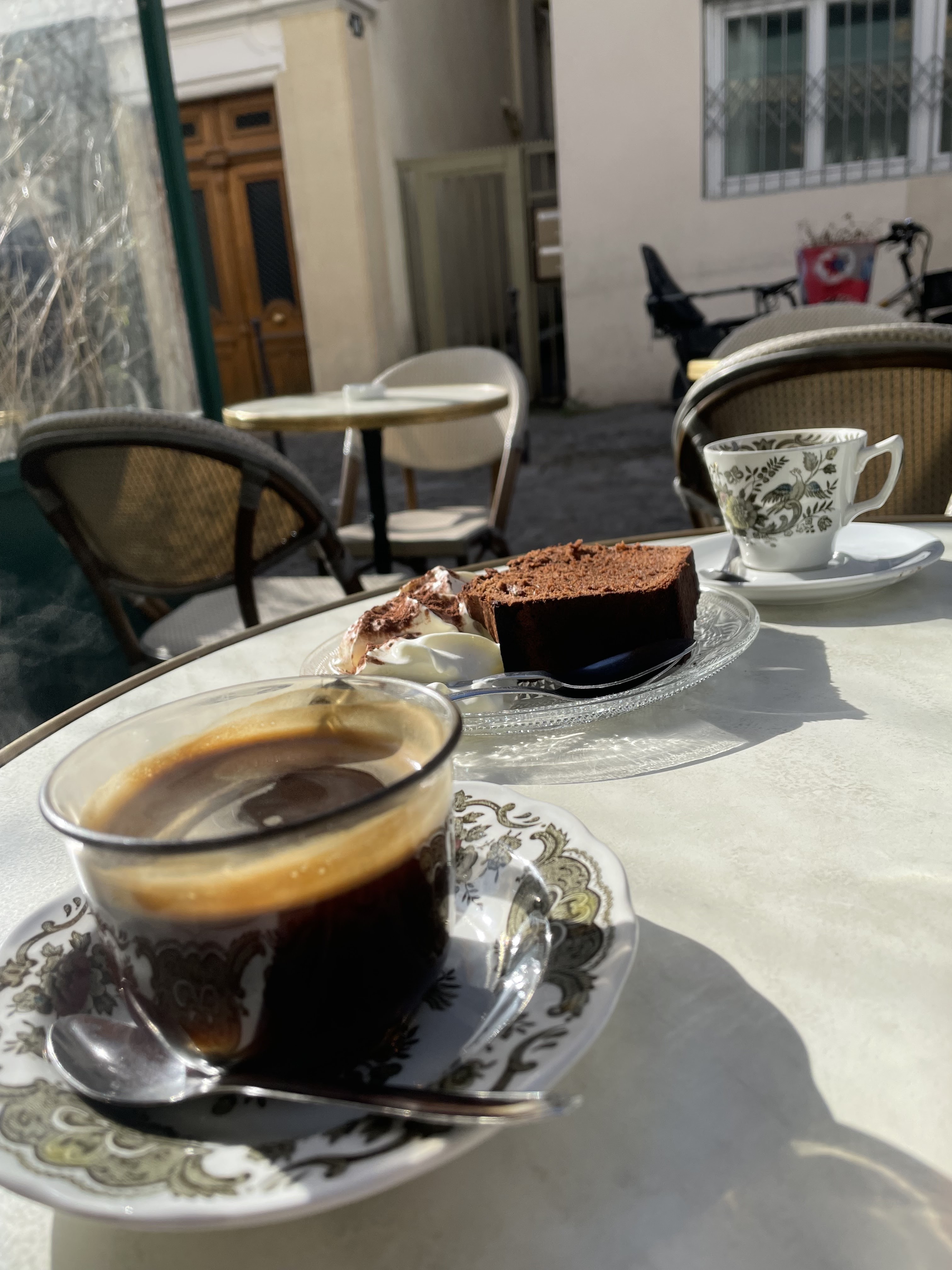 Un cake délicieux et un café à déguster dans ce beau bistrot ensoleillé ♥️