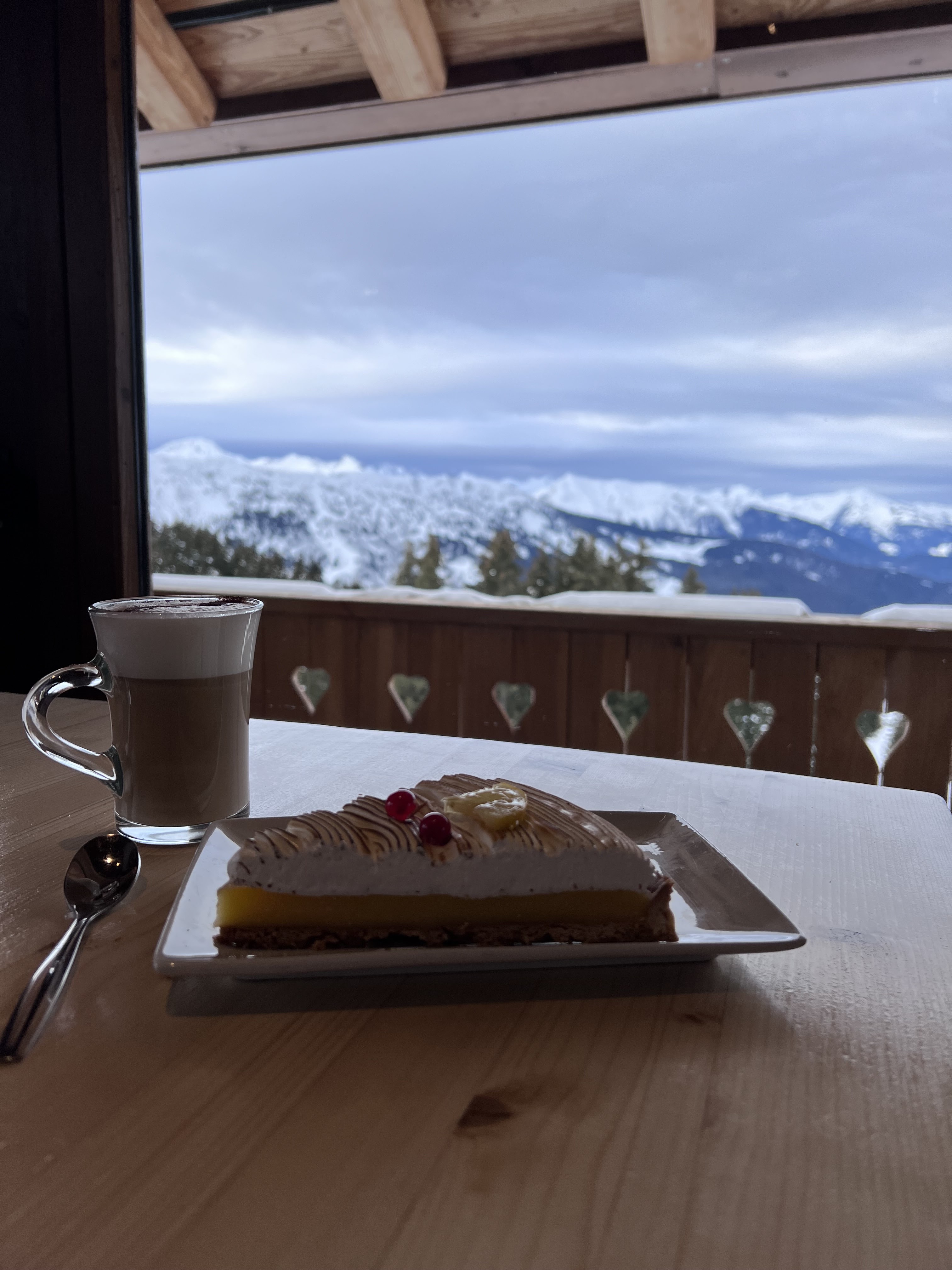 Un bel après-midi de ski, de la bonne nourriture et de belles vues.