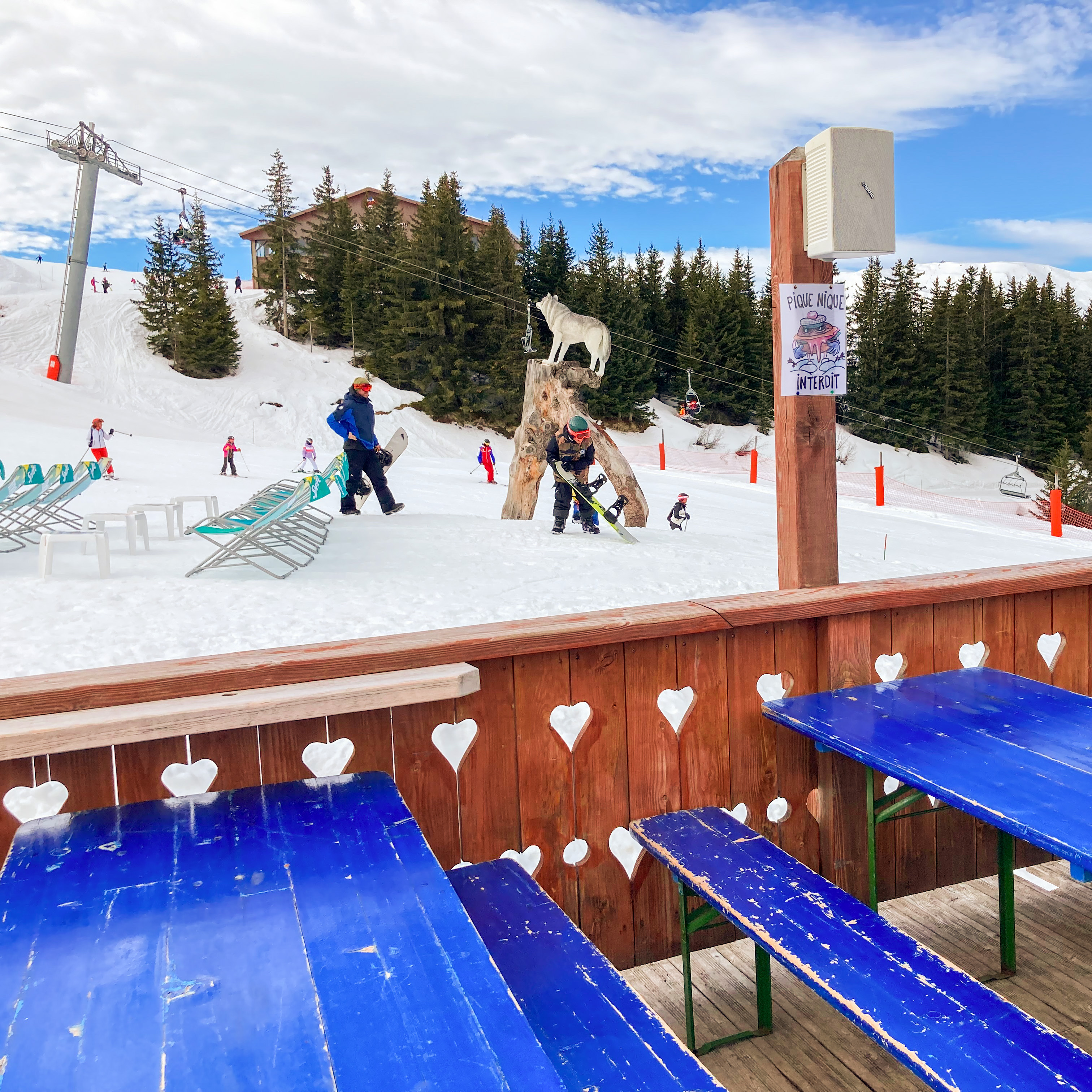 La meilleure terrasse de Meribel ! Idéal pour déjeuner rapidement ou pas à midi en plein soleil ou terminer en fin de journée par un vin chaud (après avoir comparé avec d'autres sachez si vous êtes amateur qu'il est vraiment délicieux), une bonne bière ou une chocolat chaud avec une chantilly onctueuse et en abondance !