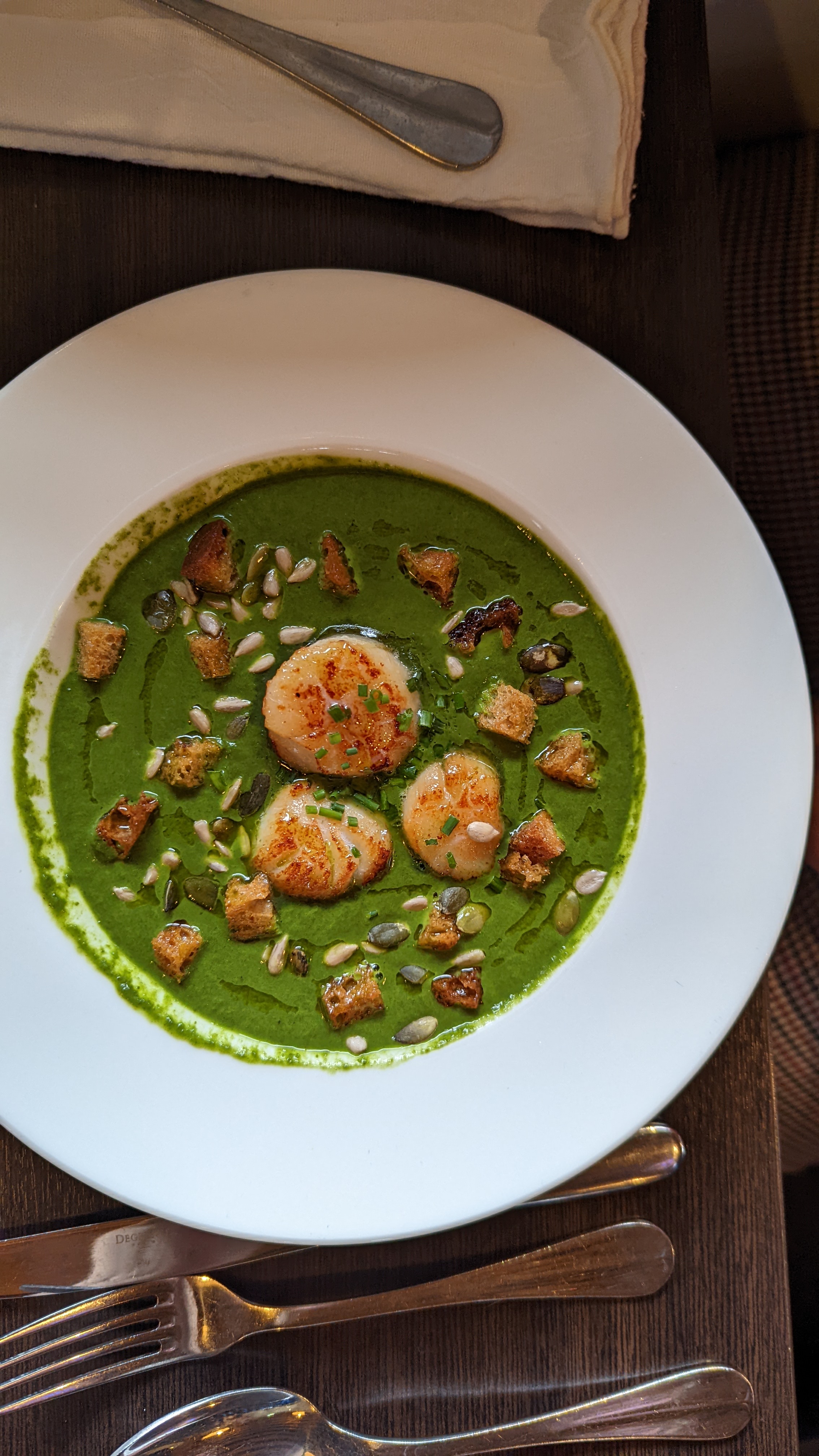 Très jolie carte qui donne envie de revenir pour tout goûter. Viande rouge excellente, coup de cœur pour la soupe froide de petits pois qui gagne à être connue ! Personnel au petit soins. Rien à dire, tout était bien