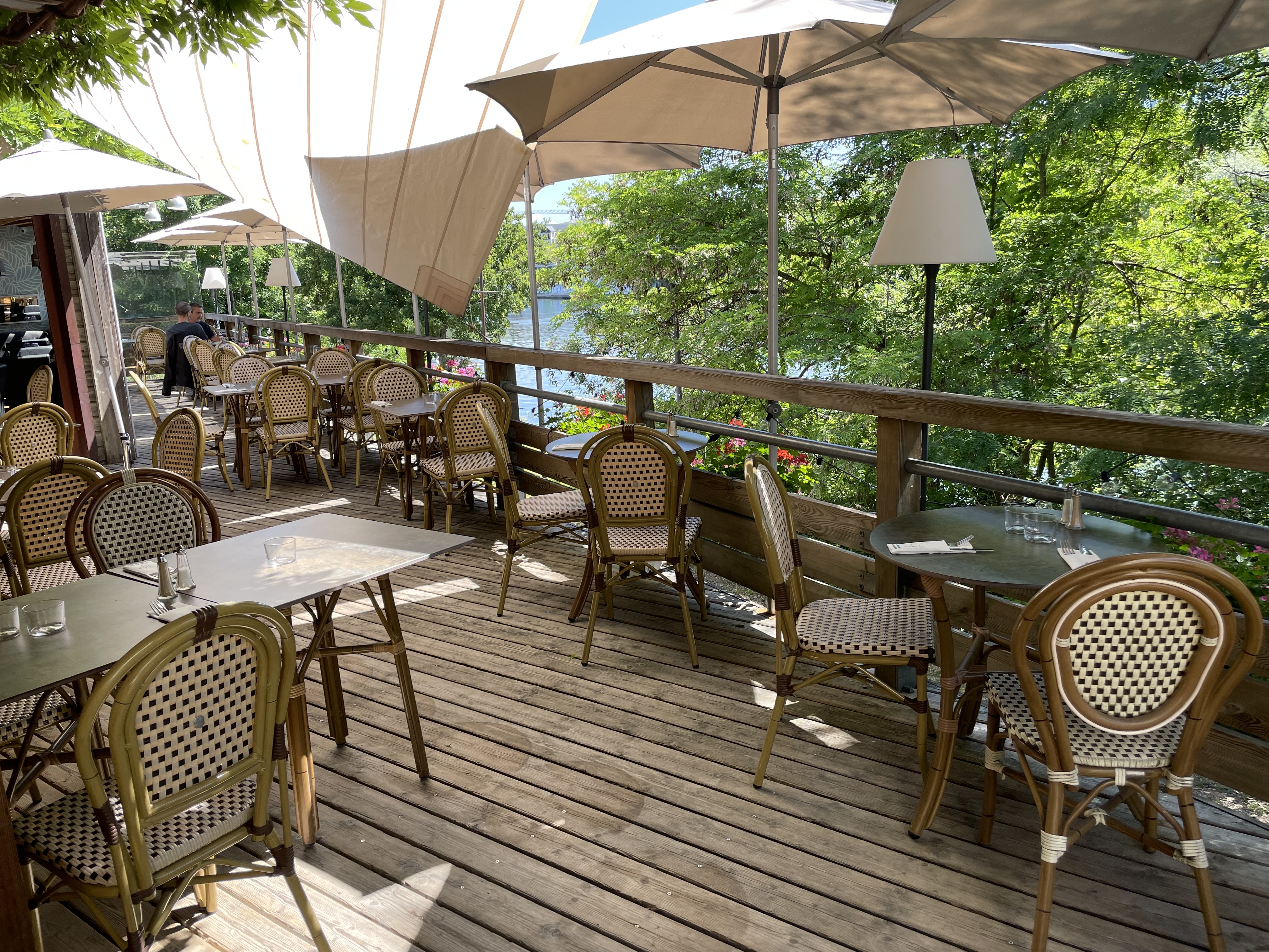 Très bon restau avec terrasse qui donne directement sur la Seine. Ambiance chalet, cuisine correct, service avec le sourire. Rapport qualité prix dans la norme. Bref bonne adresse.