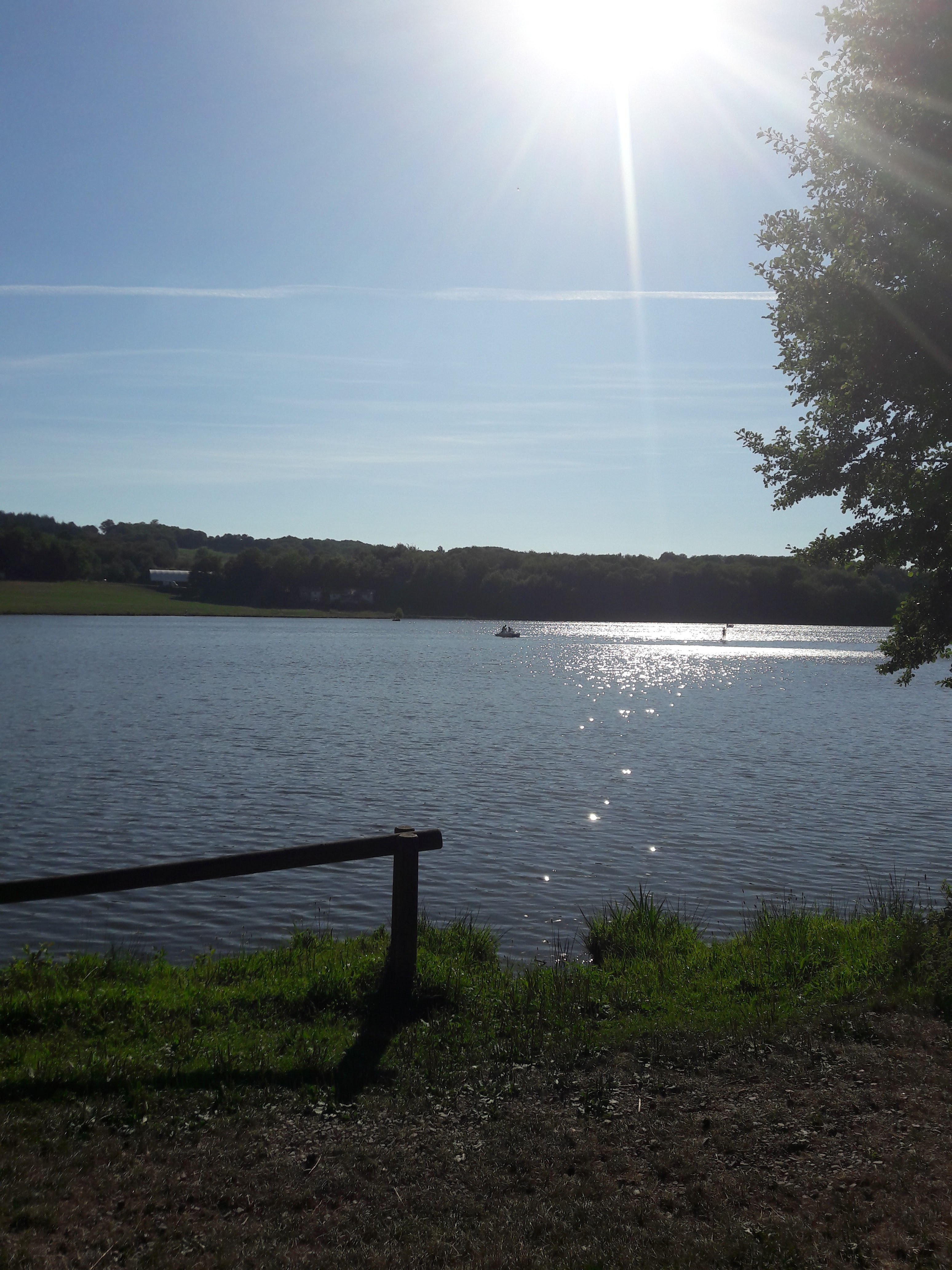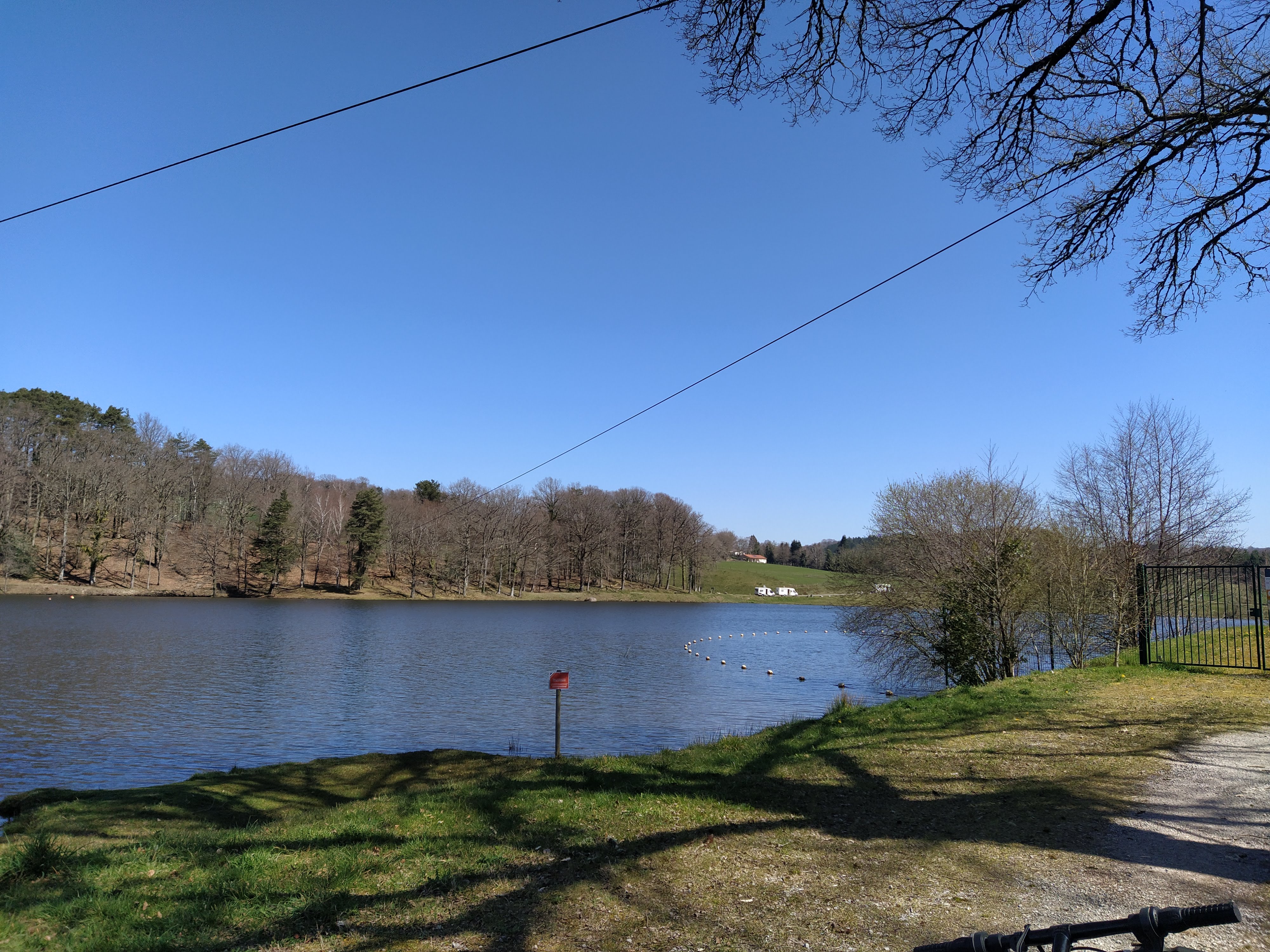 Lac tranquille. On peut y manger en famille, barbecue a disposition. Jeux aquatique avec canoë, baignade surveillé en saison. Bon moment à passer avec la famille.