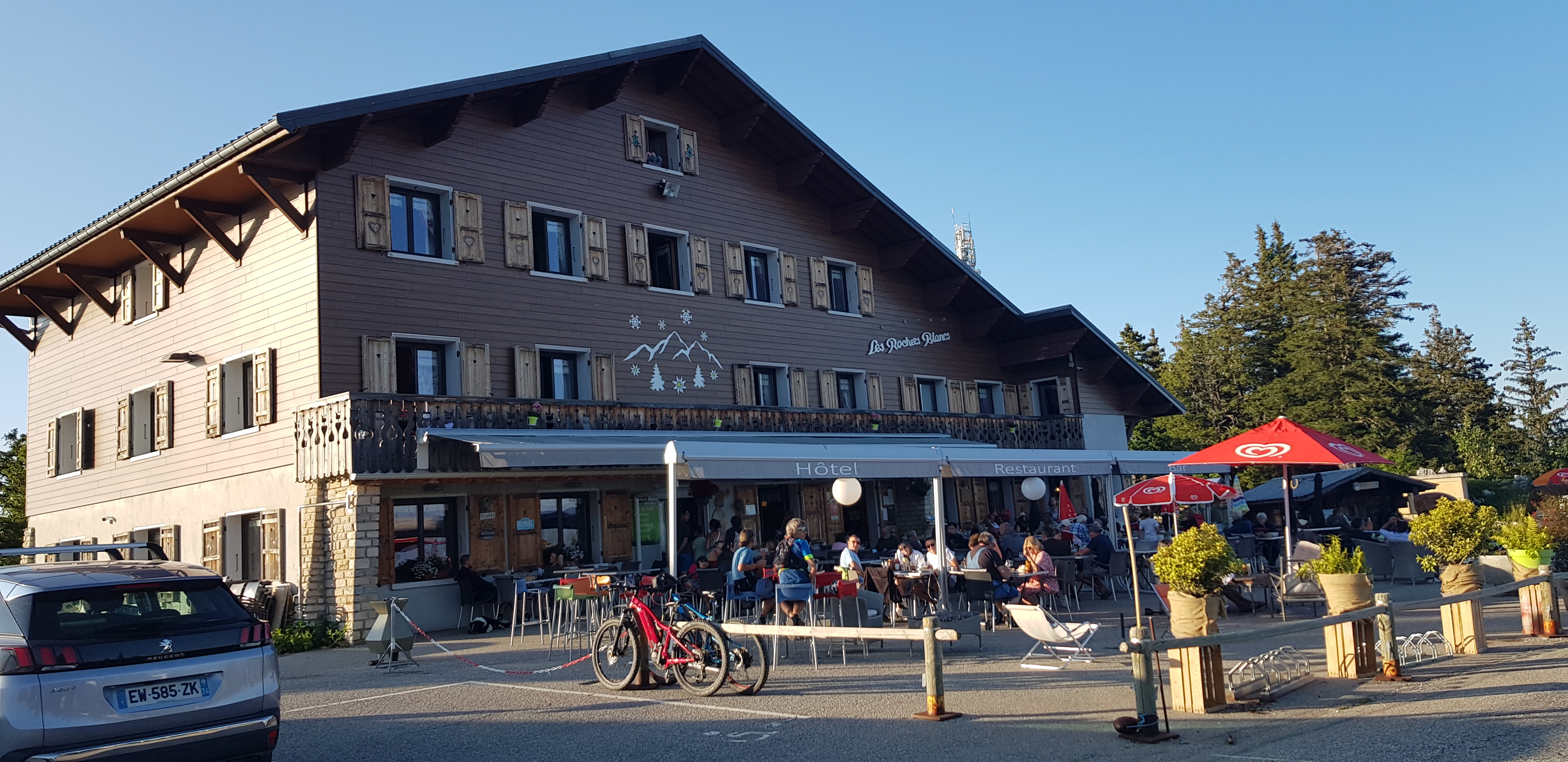 Une superbe terrasse en haut du col du Semnoz pour se remettre de 16 km de vélo ! Des prix très corrects pour l'emplacement.