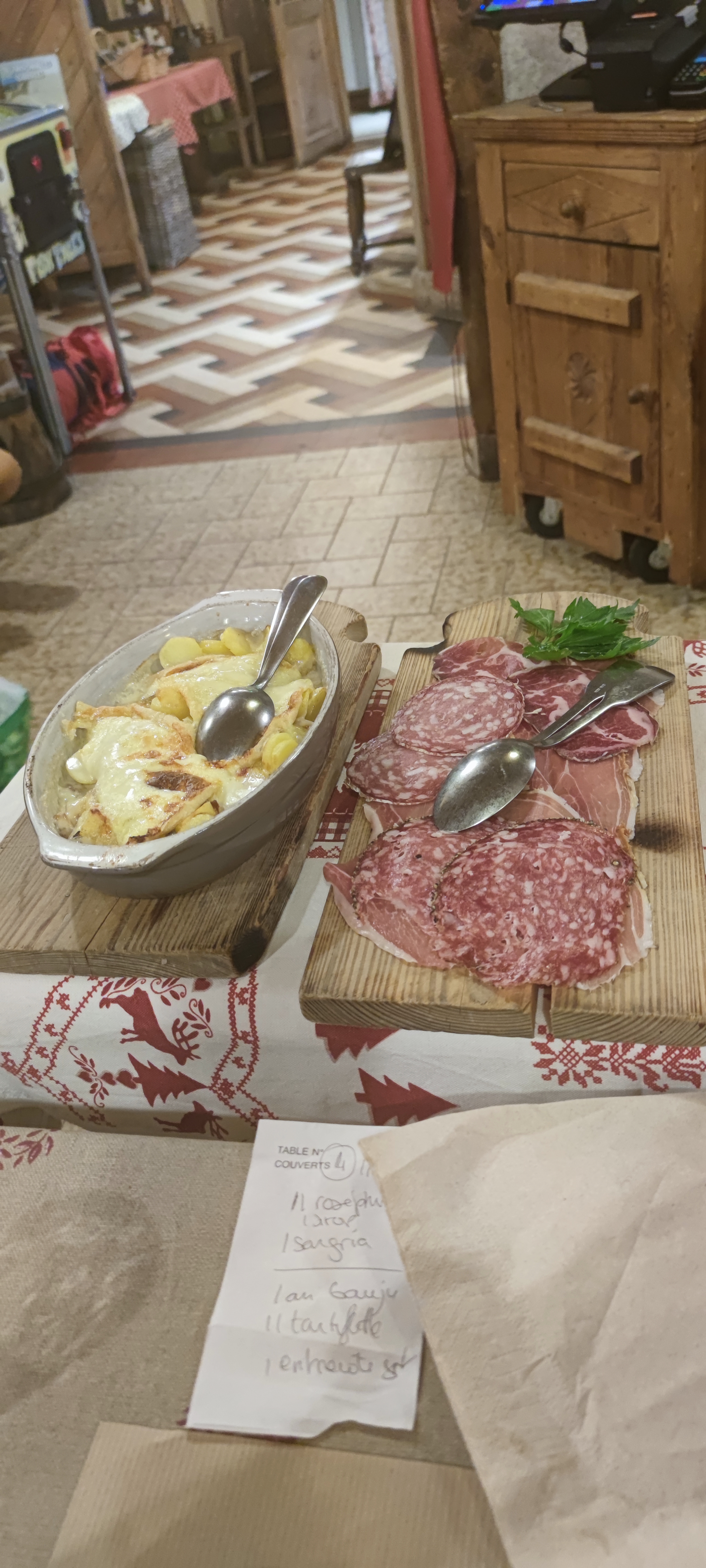 Après avoir attendu près d'une heure trente pour manger (pauvres serveuses débordées mais efficaces et agréables. Revoir les résa peut être ...), nous avons enfin pu déguster des plats savoyards. De bons produits et frais. Petite déception quant au gratin savoyard, il est dauphinois mais pas savoyard ... Nouvelle déception au moment du dessert, café gourmand à 9E , assiette presque vide avec de minuscules mignardises industrielles ... cruelle déception. On est face au mont Blanc mais quand même ...