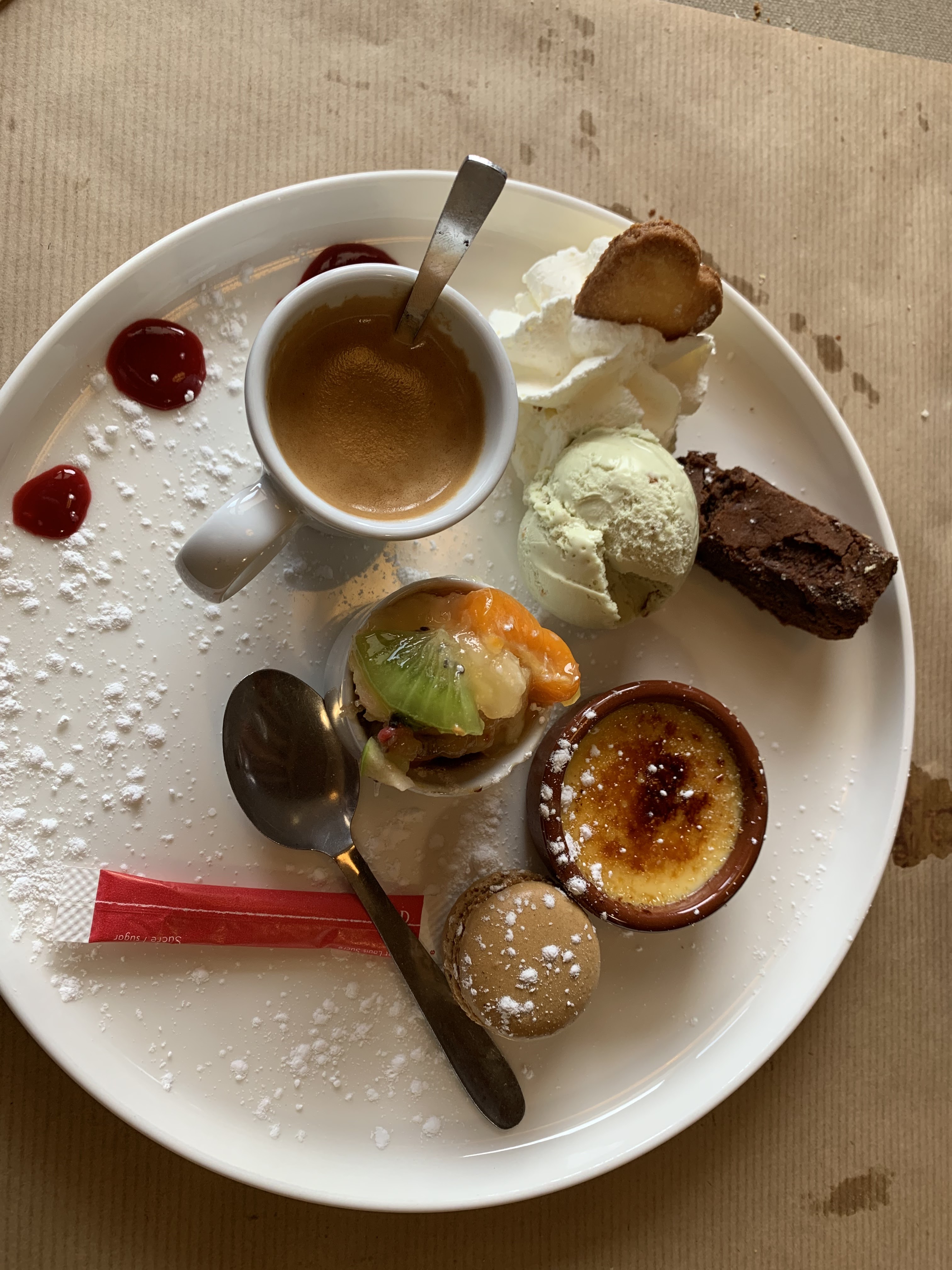 Nous y sommes allés pour un déjeuner en famille. Nous avons mangé à l'intérieur du restaurant. Serveuse attentionnée, on a pu demandé un autre dessert que celui proposé à l'ardoise qui ne nous plaisait pas trop. Les plats sont bons. Je recommande.