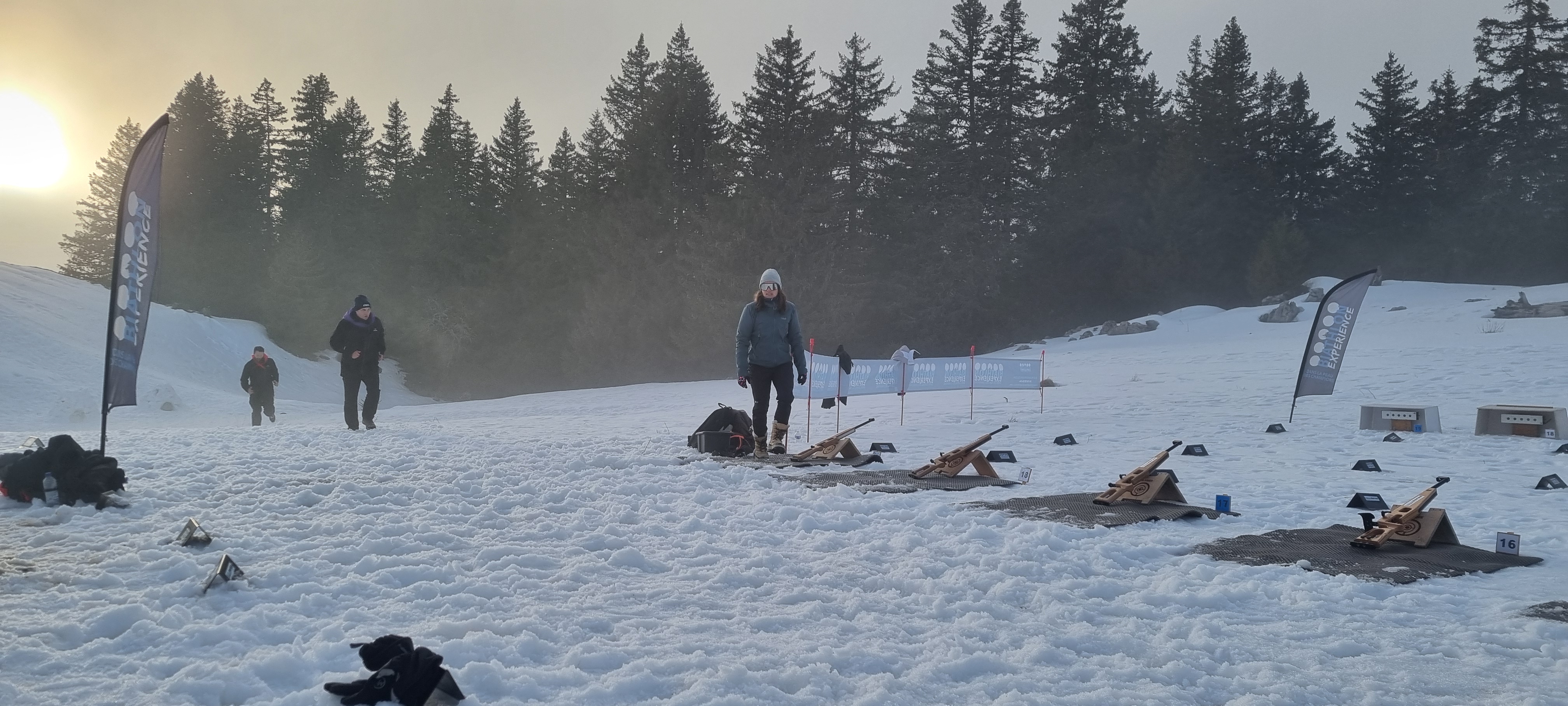 Arrêté pour déguster un vin chaud et épicé après un biathlon intense (simplifié) avec notre équipe. La vue depuis le chalet est spectaculaire.