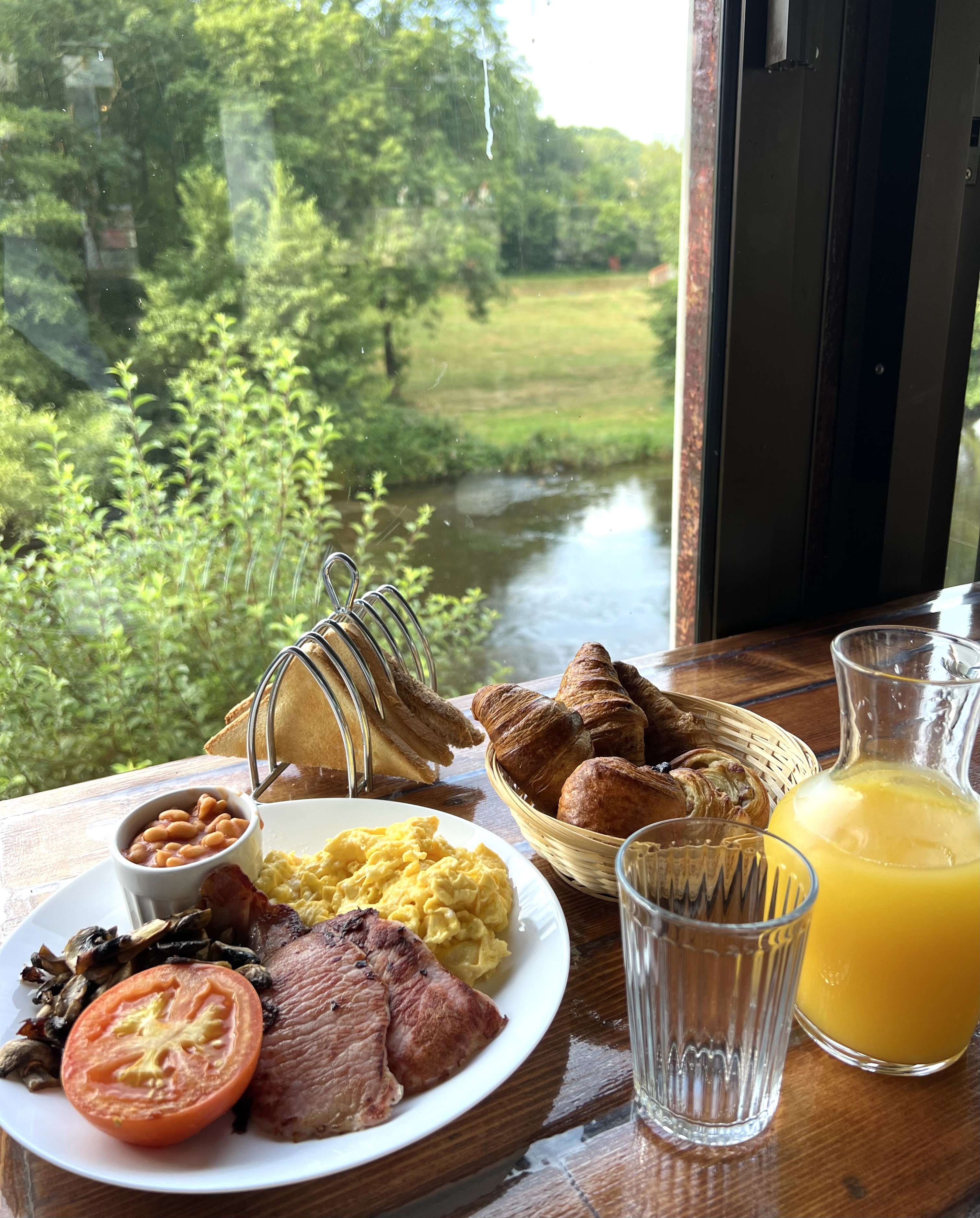 En bord de Sioule sauvage, la forêt paisible, les oiseaux... une chambre d'hôte décorée avec soin,une salle de restaurant tellement chaleureuse et cosy, une terrasse badass avec la vue, un petit coin avec des canards, une biquette, des poules trop joliment agencé : ici Andrew et Richard ont du goût, savent accueillir et la cuisine est juste délicieuse ! Merci! On revient et on reviendra ! Dépaysement garantie avec un petit déjeuner tradi anglais divin et où l'anglais est la langue officielle : on adore! We loving it!