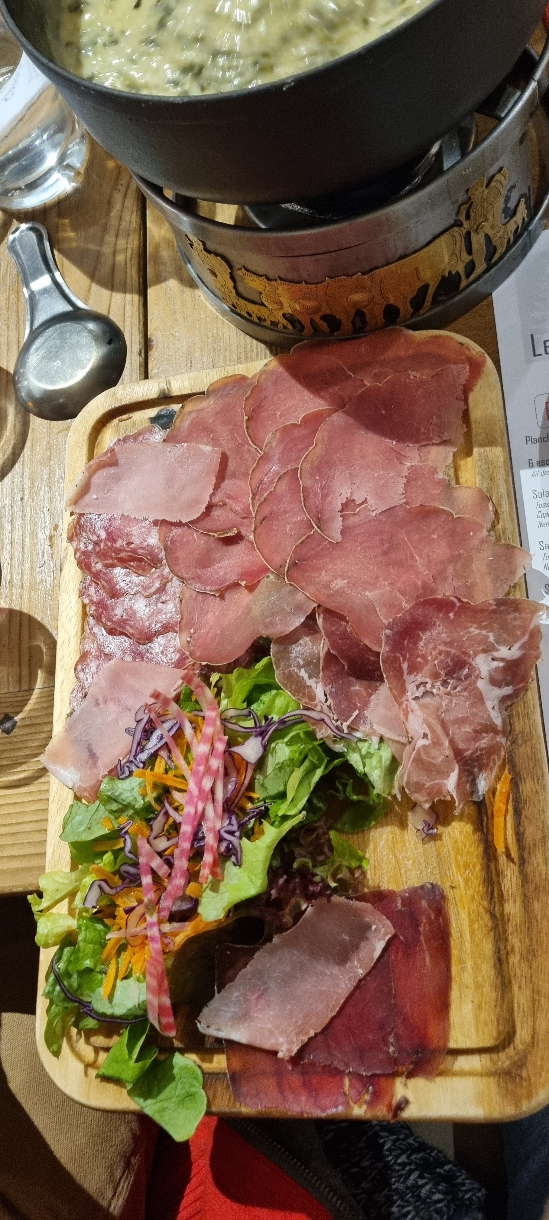 Petit restaurant avec une carte des plats pour 2 personnes... mais sinon j'ai apprécié le plat l'écorce.... plat de charcuterie avec fondu de fromage...accompagner d'une bouteille de Mondeuse. pour finir avec dessert et café pour un tarif vraiment attractif