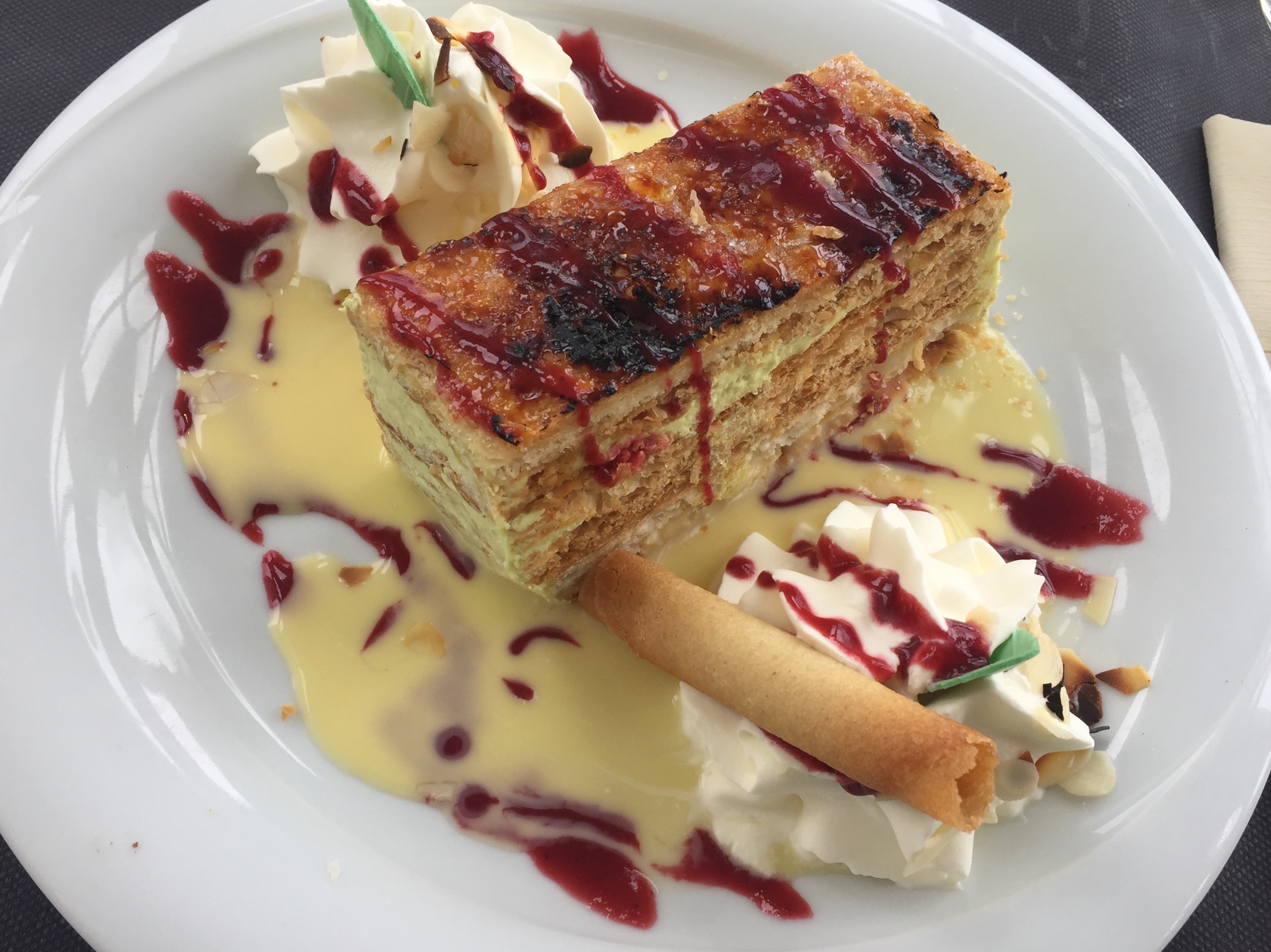 Superbe ! Vue splendide, très belle décoration de salle, très bons plats. Le millefeuille pistache framboise est un délice