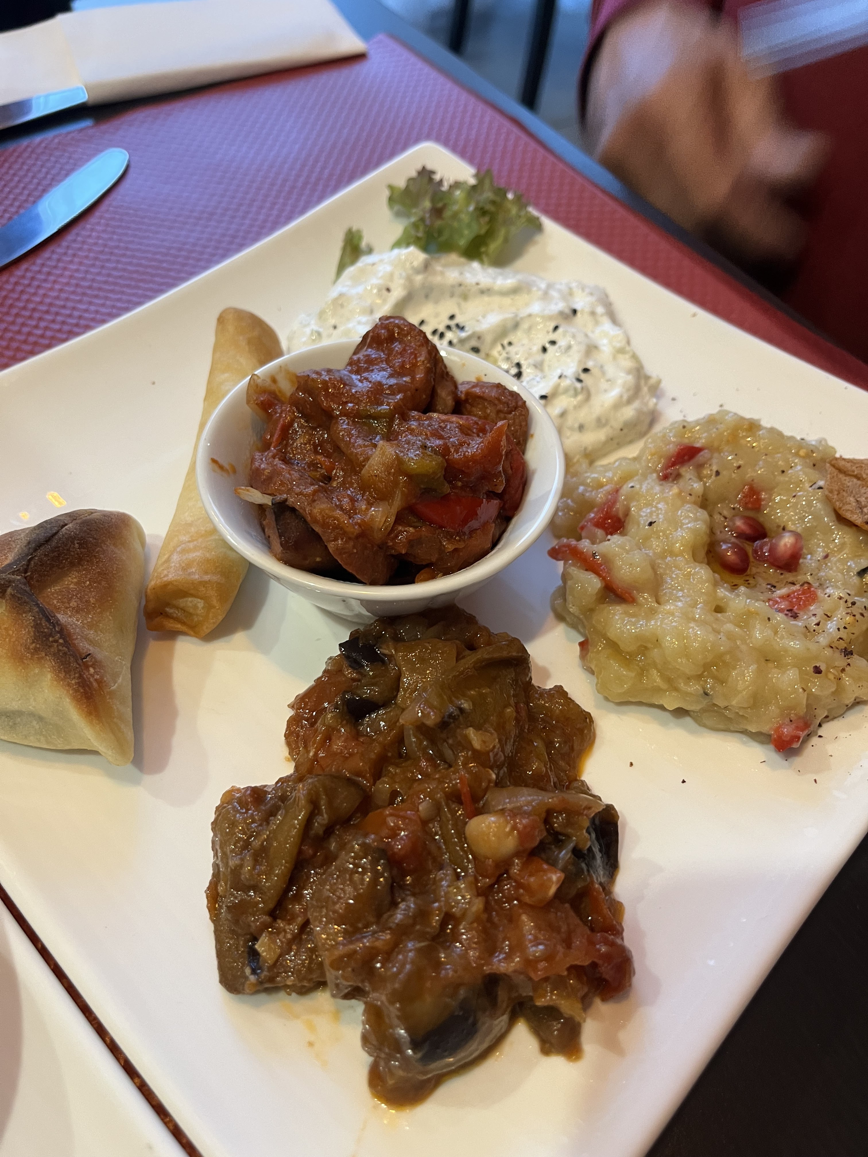 Des mezzés Excellent!!! Une gentillesse sans pareil !!!! Nous reviendrons découvrir encore d autres plats ! Un delice !