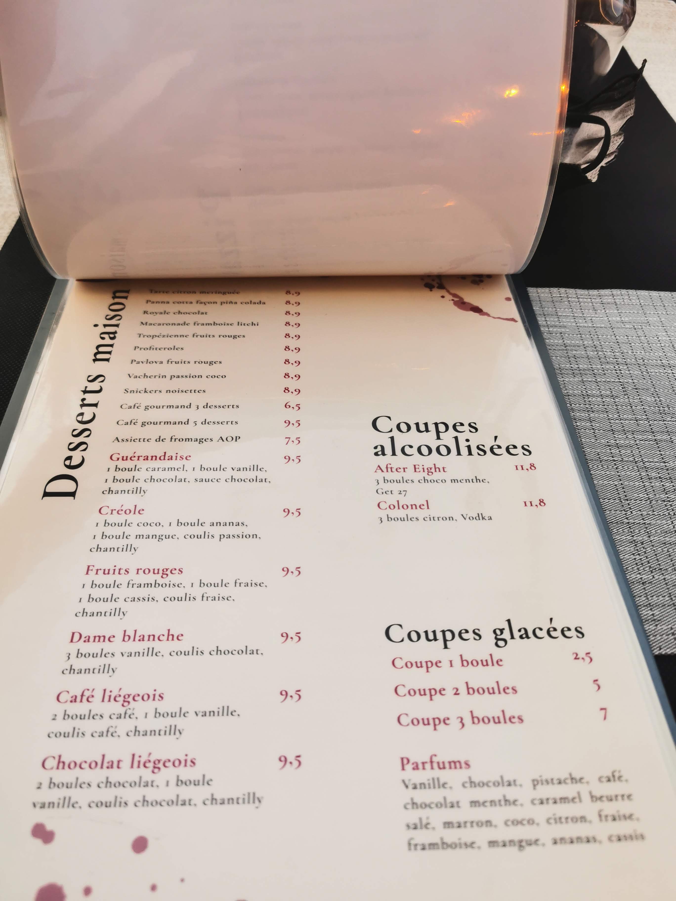 Bon repas dans l'ensemble ( petit bémol sur le fondant au chocolat avec la crème anglaise aromatisée a la menthe ce n'était pas précisé et ma fille n a pas du tout aimé,ni moi) Par contre très mécontents de la serveuse qui pousse à la consommation sans expliquer qu'il y a des suppléments, qui insiste auprès des enfants qui ne veulent pas d' apéro en leur proposant au final de l eau (ils disent oui bien-sûr) et se rapplique avec une bouteille d'eau minérale de 1 L , facturée 6€ . Lors du paiement, ne ramène pas la monnaie ( pourboire quelle s'octroie alors que nous comptons malgré tout lui laisser avec supplément) et disparaît ..nous ne l'avons plus vu .