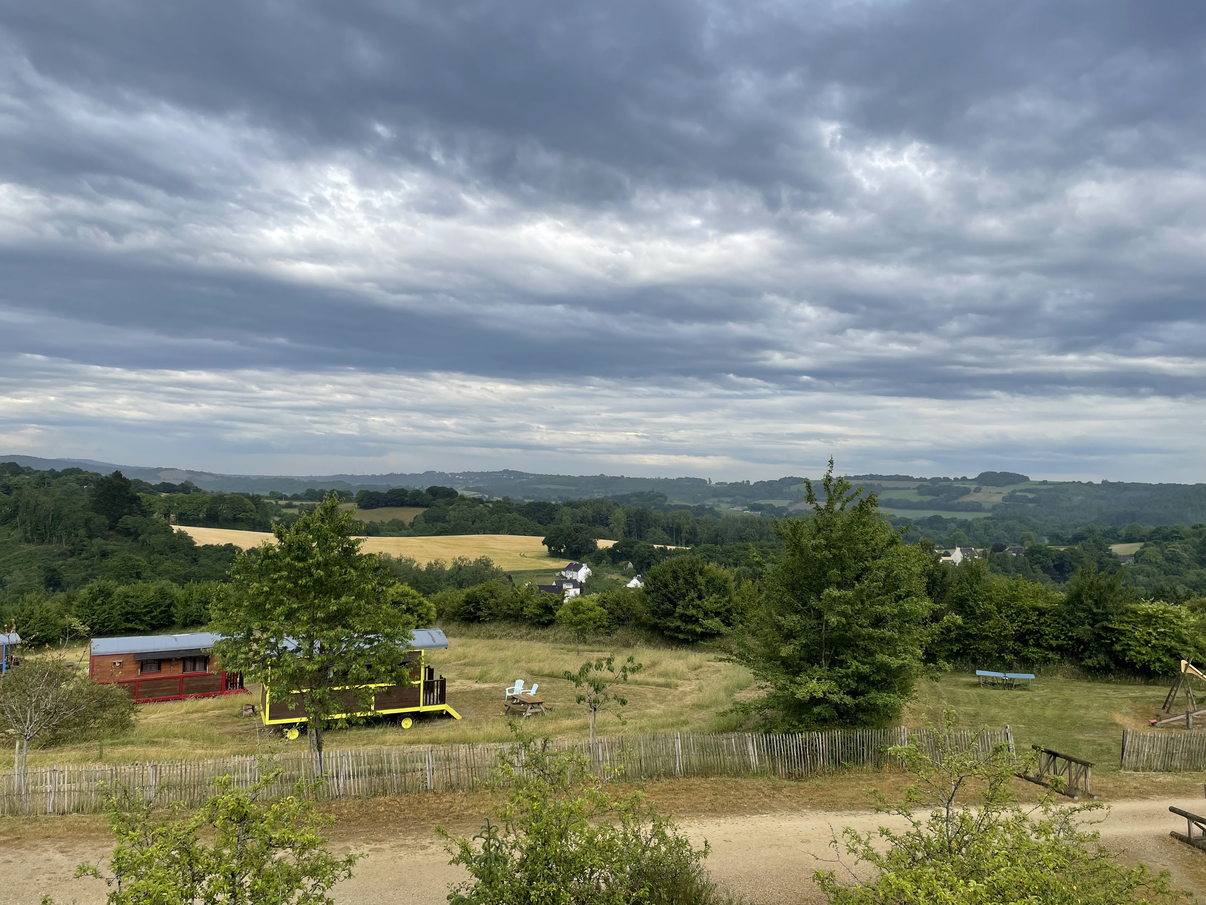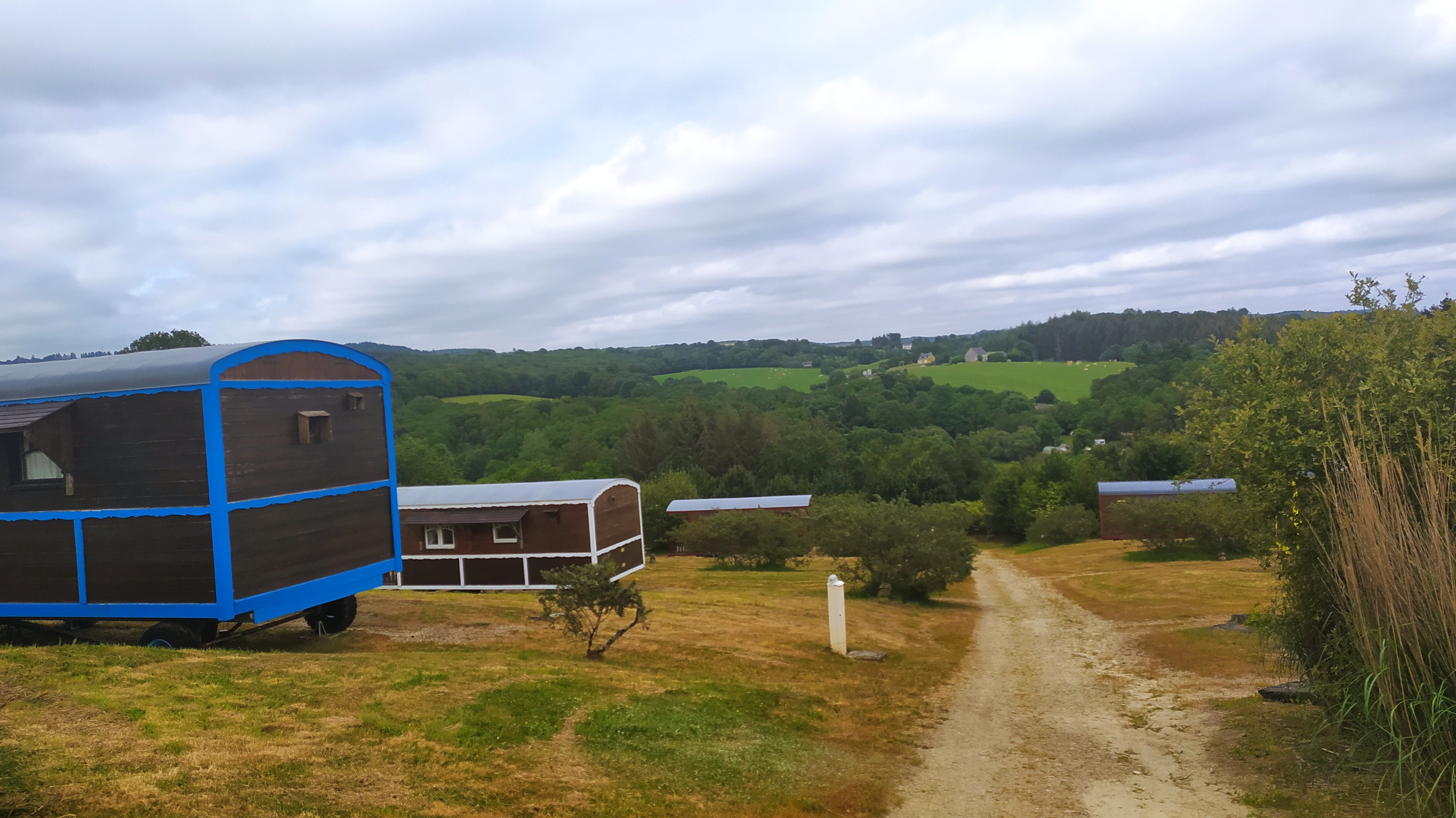 Accueil chaleureux, le couple qui gère les lieux sont adorables et sont toujours là pour donner de bons conseils, tant sur les activités à faire en journée que sur les apéritifs et repas ! Repas qui sont d'ailleurs excellents, mes félicitations à la cuisine ! Notre roulotte gîte était toute mimi et super propre, il y a beaucoup d'espace entre chaque roulotte si bien qu'on se sent vraiment chez nous, comme dans un petit cocon de bonheur ! L'accès au domaine est relativement simple, si on voit directement les panneaux depuis Braspart. L'endroit est d'ailleurs magnifique, vue très belle! J'ai été enchanté de mon séjour et je reviendrai très vite! Je ne peux donc que le conseiller !! Allez y les yeux fermés ! Merci encore !