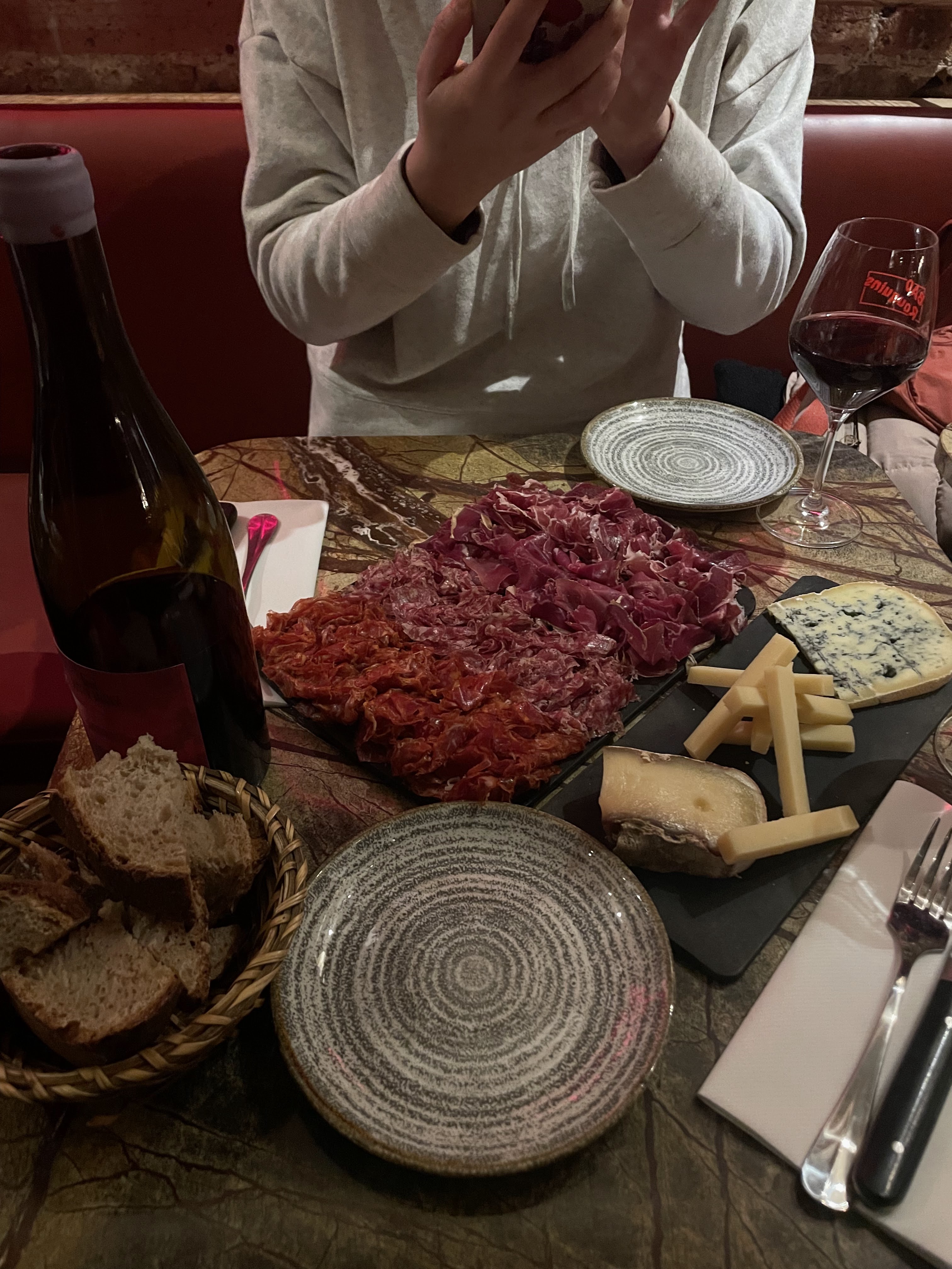 J’ai passé un excellent moment hier soir avec mon amie, autour d’une généreuse planche « copains comme cochons » composée de charcuteries de très grande qualité ,accompagnée d’un pain délicieux, et d’un très bon vin blanc correspondant aux attentes que nous en avions, très bien conseillées par l’équipe charmante à notre écoute. De plus, le cadre est très chaleureux. Je recommande et j’y retournerai avec plaisir.
