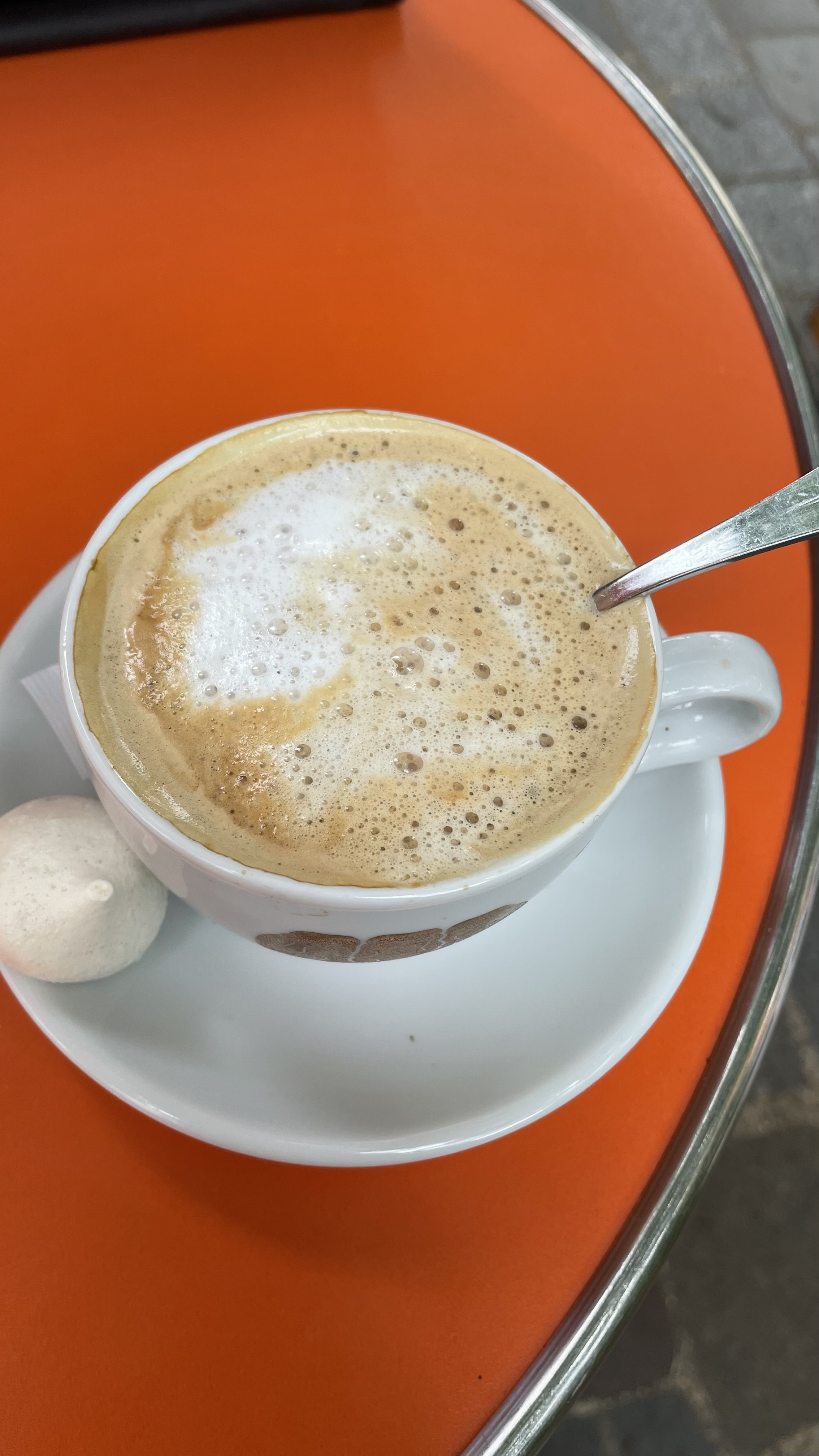 Nous avons eu la chance de trouver une table à l'extérieur lors d'un concert live. L'endroit est un peu cher mais propose une grande variété de vins différents, probablement une excellente cuisine et des Aperol Spritz branchés. Cependant, l'ambiance n'aurait pas pu être meilleure : des gens heureux tout autour !