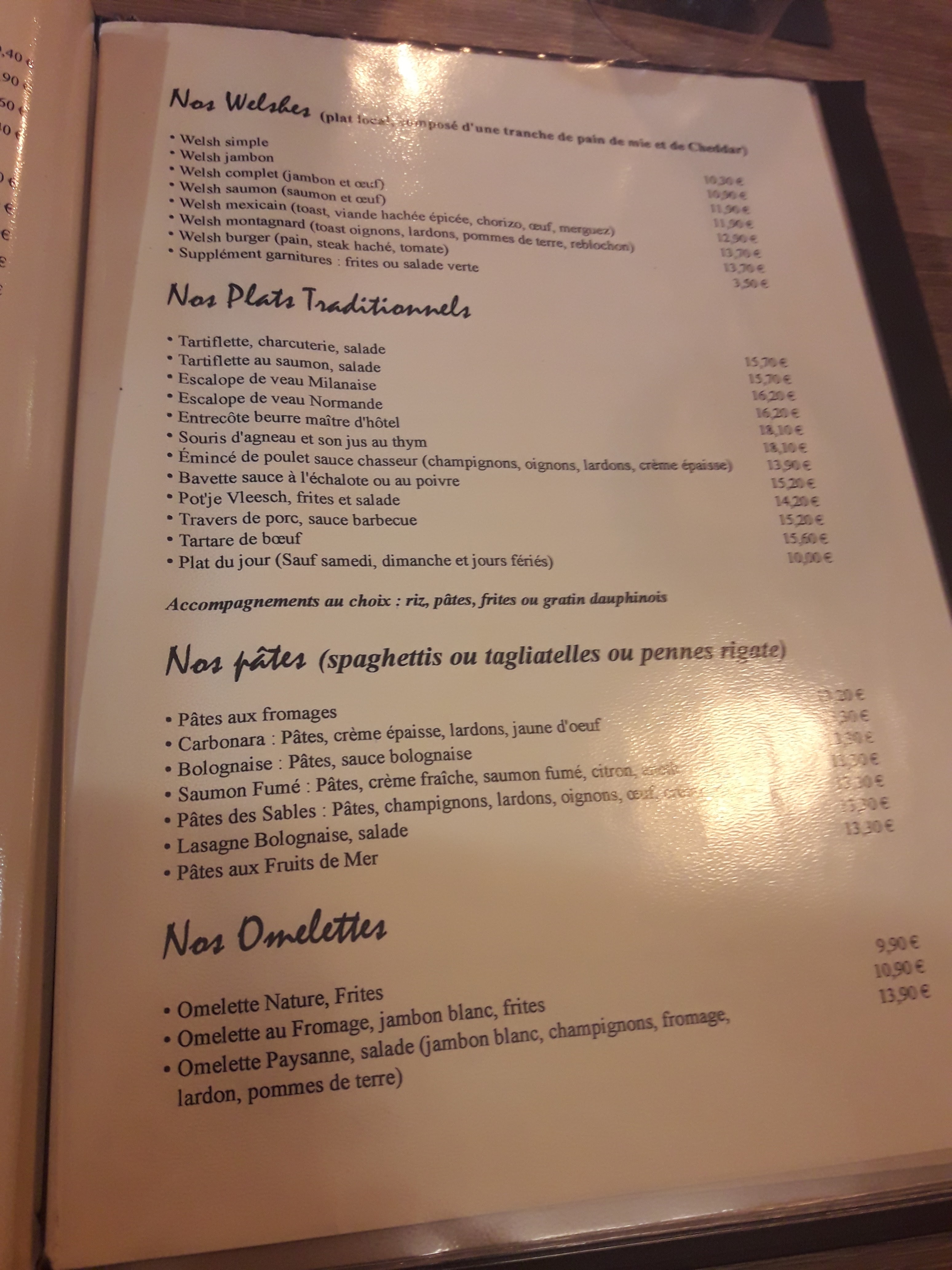 Très bon restaurant! Patron sympa. Je recommande le welsh! Je me permet de mettre les photos de la carte car très difficile à trouvé sur internet :)