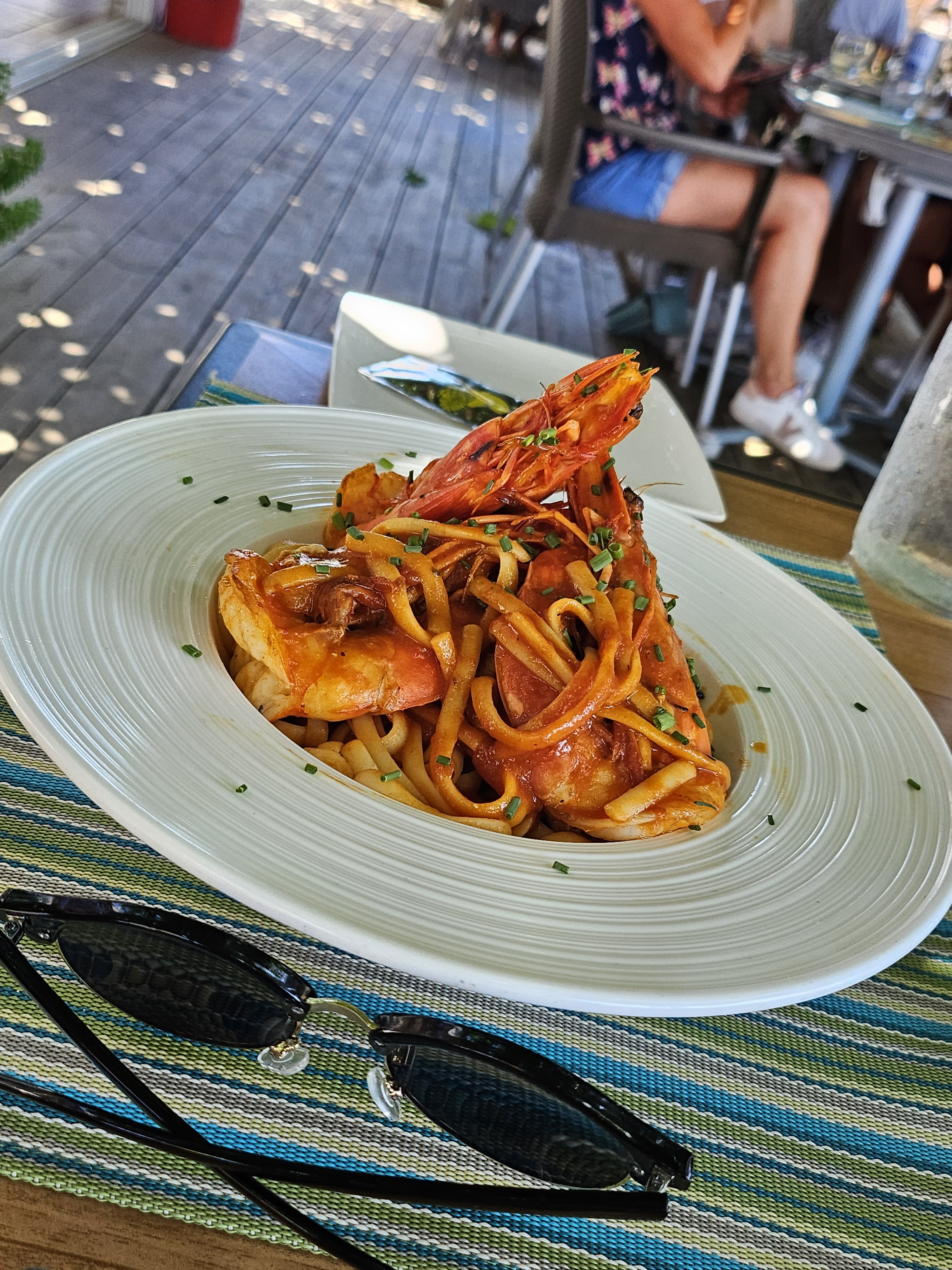 Belle terrasse donnant sur la baie. Serveur sympathique cependant il est bien regrettable que les pâtes étaient trop cuites baignant dans la sauce. Rapport qualité prix un peu cher pour ce repas. Dommage...