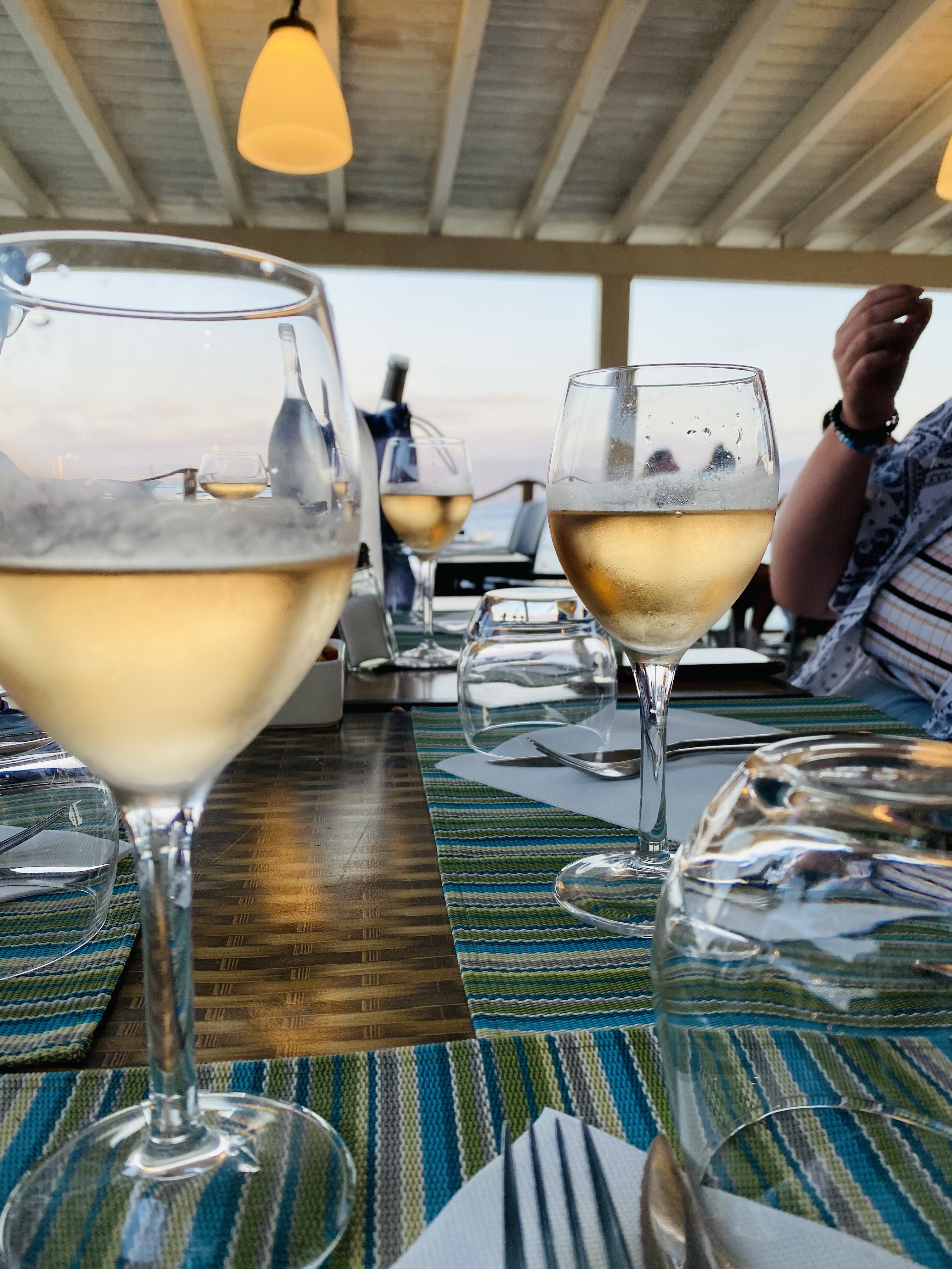Très bel endroit avec vue splendide sur un dégradé de bleu … très bonne cuisine et les serveurs sympathiques et très compréhensifs 🤗