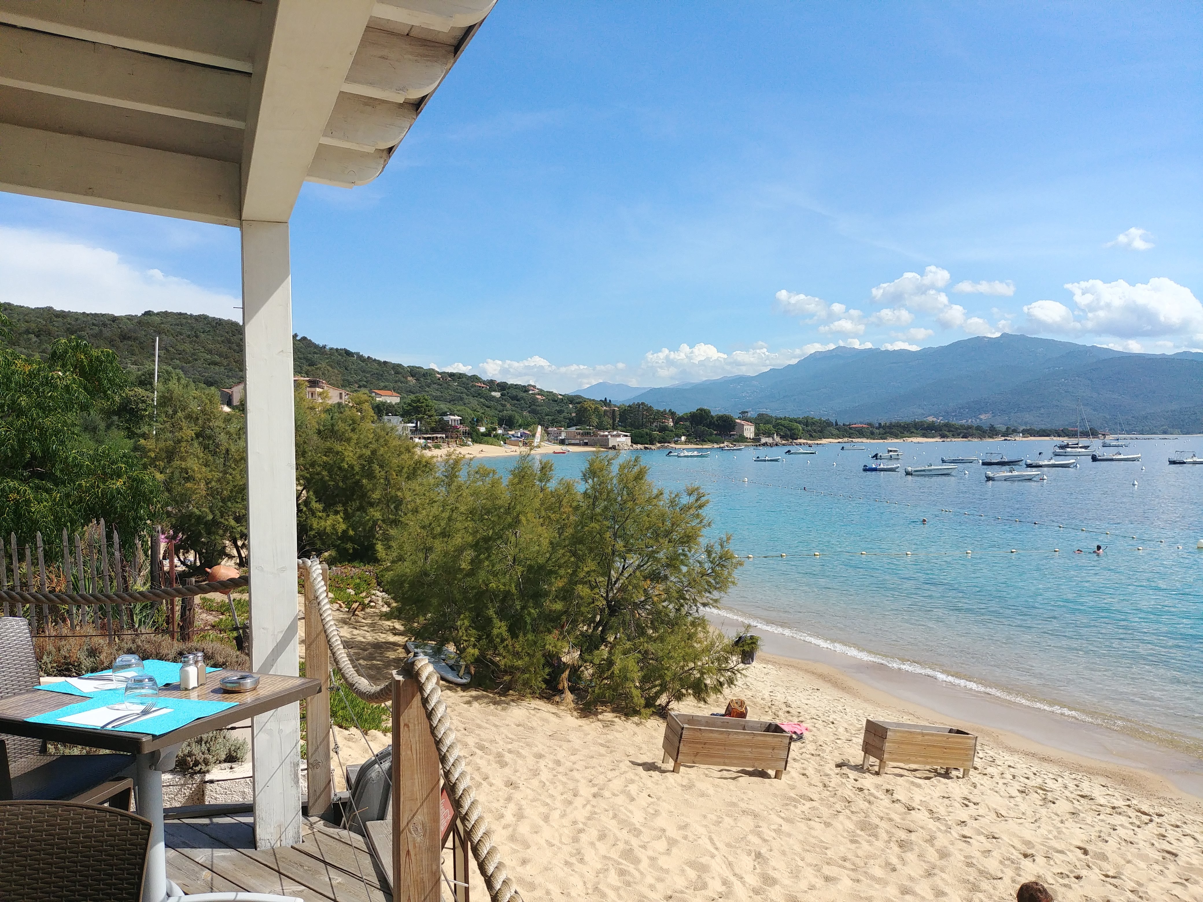 Assiettes généreuses et colorées, salade méditerranéenne digne d'un retour de pêche, accueil chaleureux, bruit des vagues, vin corse un peu corsé, un moment délicieux!!