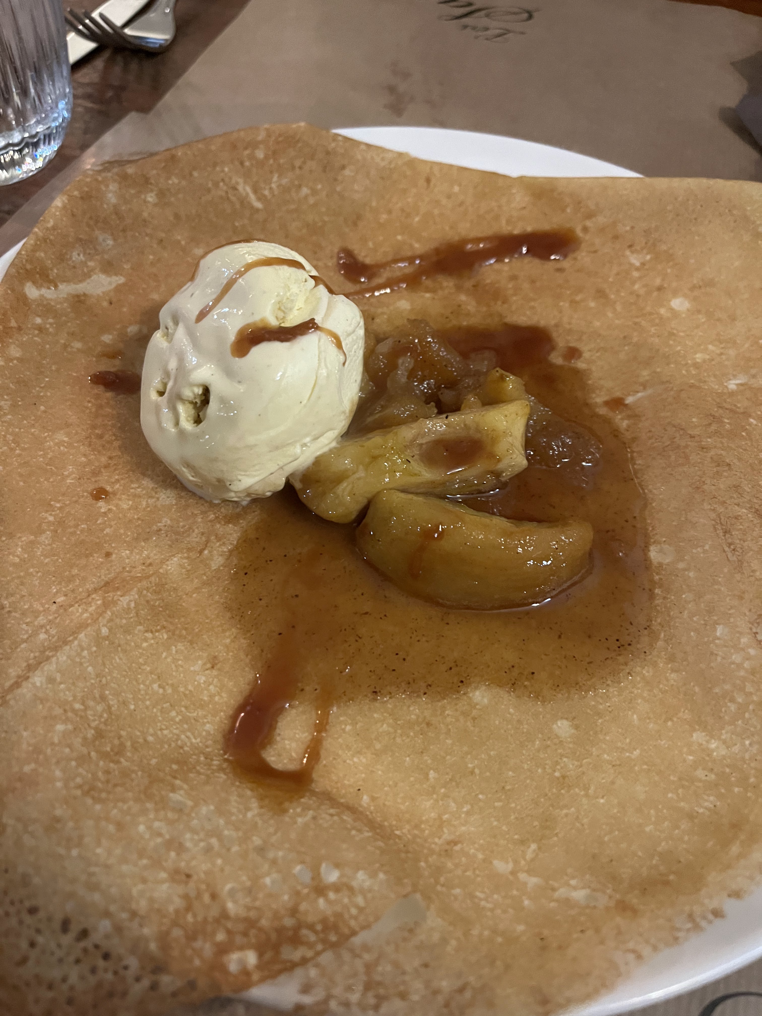 Très bonne soirée le soir de notre arrivée, le service est au top rapide et agréable , les plats (crêpes salées et sucrées) étaient très bonnes. Le petit plus, la glace enfant servie dans un petit moule à emporter.
