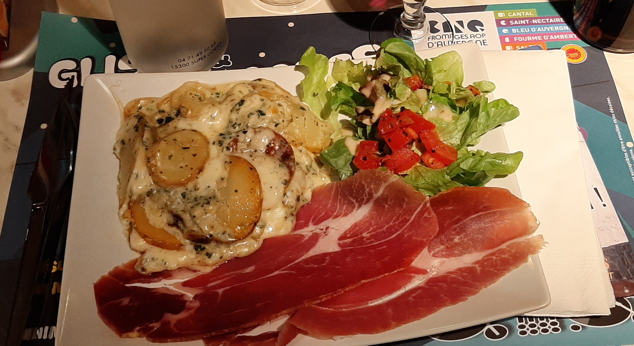 Spécialités auvergnates à déguster absolument!! Truffadz tarte myrtille un régal.Prix correct...