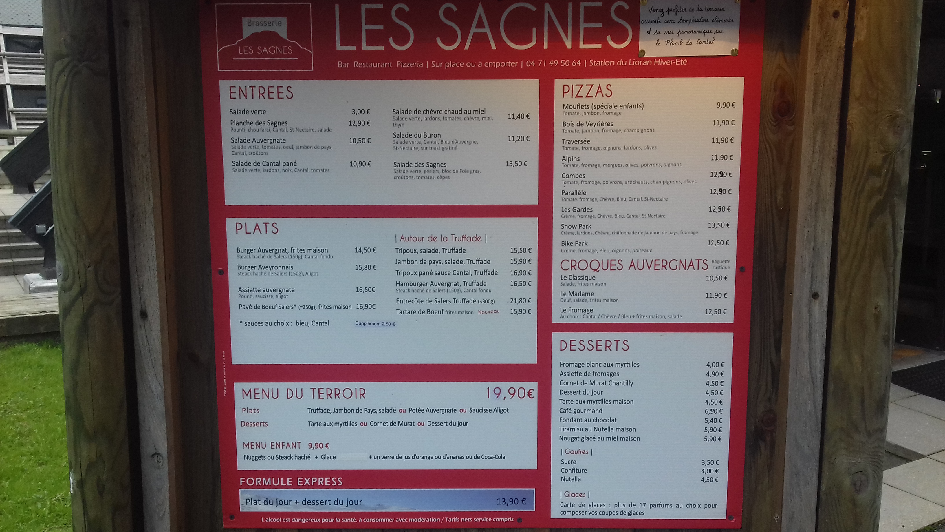 Ce restaurant sert une cuisine plutôt satisfaisante. Les plats régionaux sont à l'honneur : truffade, et aligot notamment. Horaires d'ouverture larges. Les prix demeurent corrects et l'établissement dispose d'un point presse pratique dans la station Ne pas s'attendre à de la haute gastronomie, on est dans le style brasserie et certains éléments ont l'air d'être réchauffés. Le comportement du personnel est mitigé : ils sont plutôt rudes et bourrus tels des Auvergnats envers la clientèle qu'ils croient être purement touristique. Pour ma part je suis Cantalien d'origine, et cela se voit qu'ils traitent moyennement bien ce qu'ils croient être des touristes de passage puisque j'ai pu constaté les différents styles de traitement des clients.