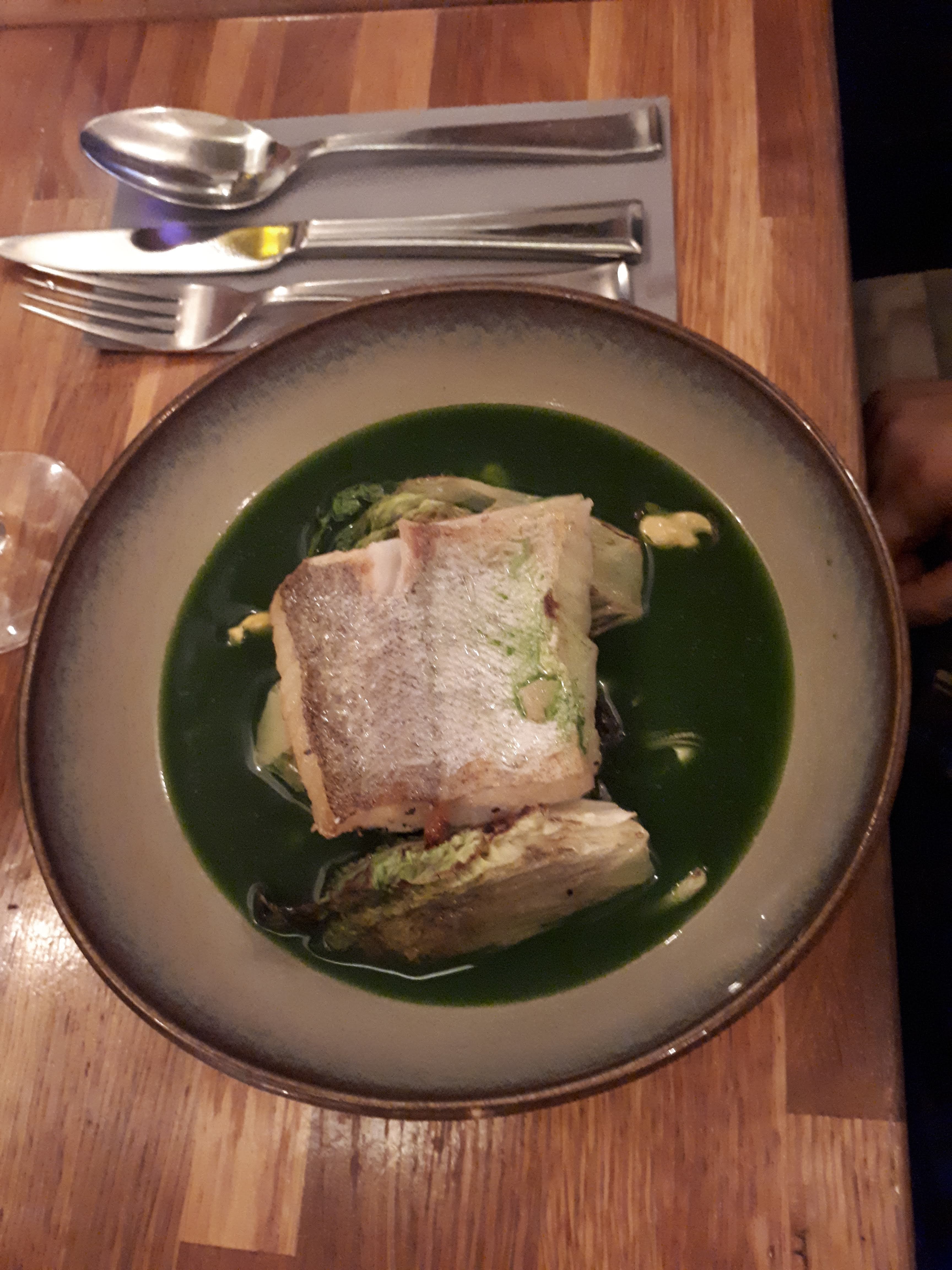 Très surfait et trop cher. Mon fils était gravement malade le lendemain, probablement après le steak. Très petites portions. Le poisson était servi avec des herbes amères et n'était pas agréable. La soupe aux poireaux était boueuse. Le restaurant manquait d'ambiance, le rythme du service était étrange et nous étions placés à l'étage avec très peu de monde.